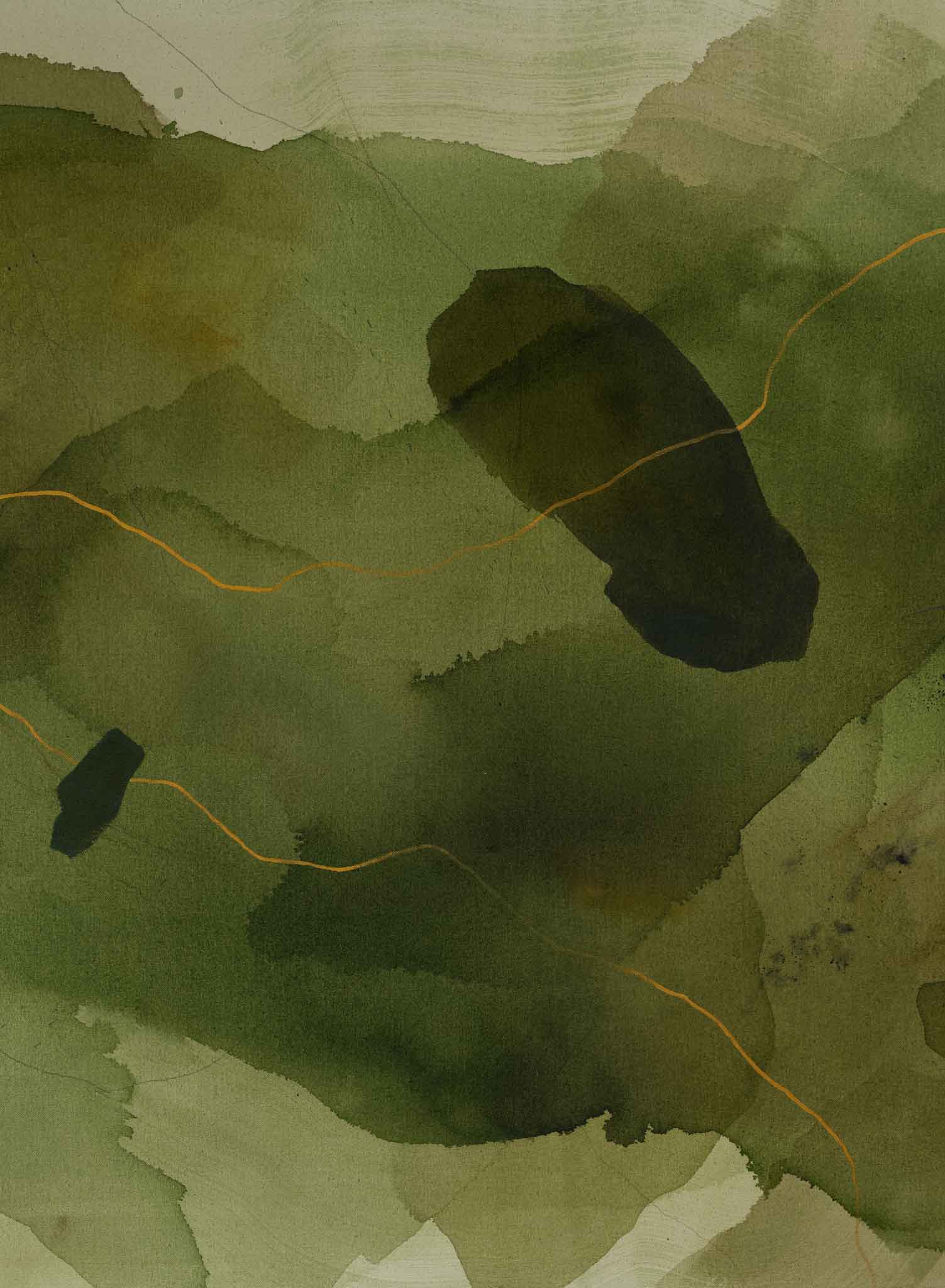 Transform your space into a green paradise with this elegant, abstract wall artwork. A fine golden line adds a touch of shine and sophistication to this layered watercolor design.