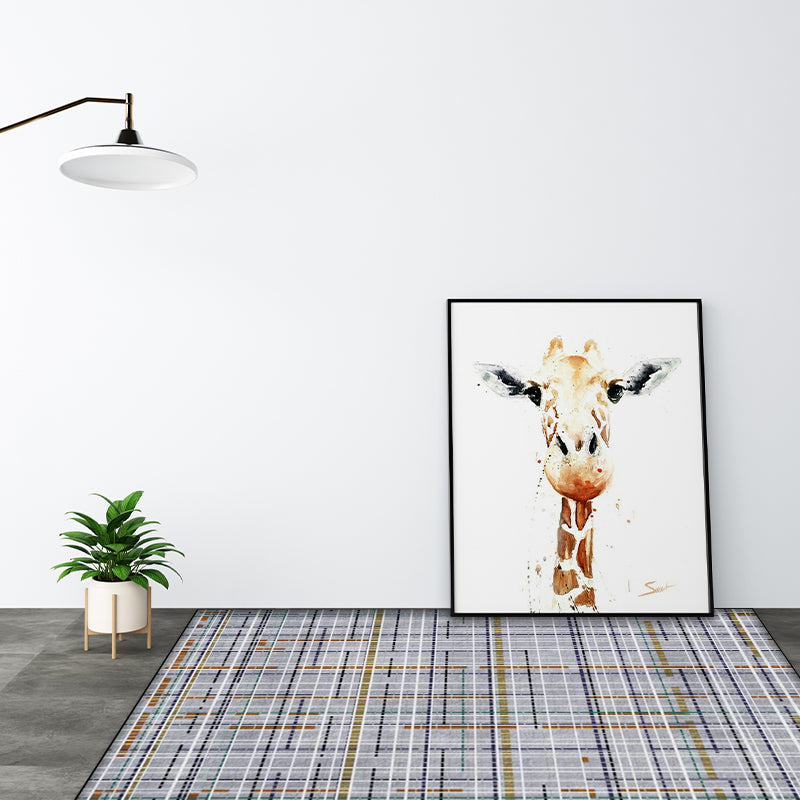 Rynx | Grey Novelty Rug Polyester Checked Pattern Rug Washable Non-Slip Backing Carpet for Living Room