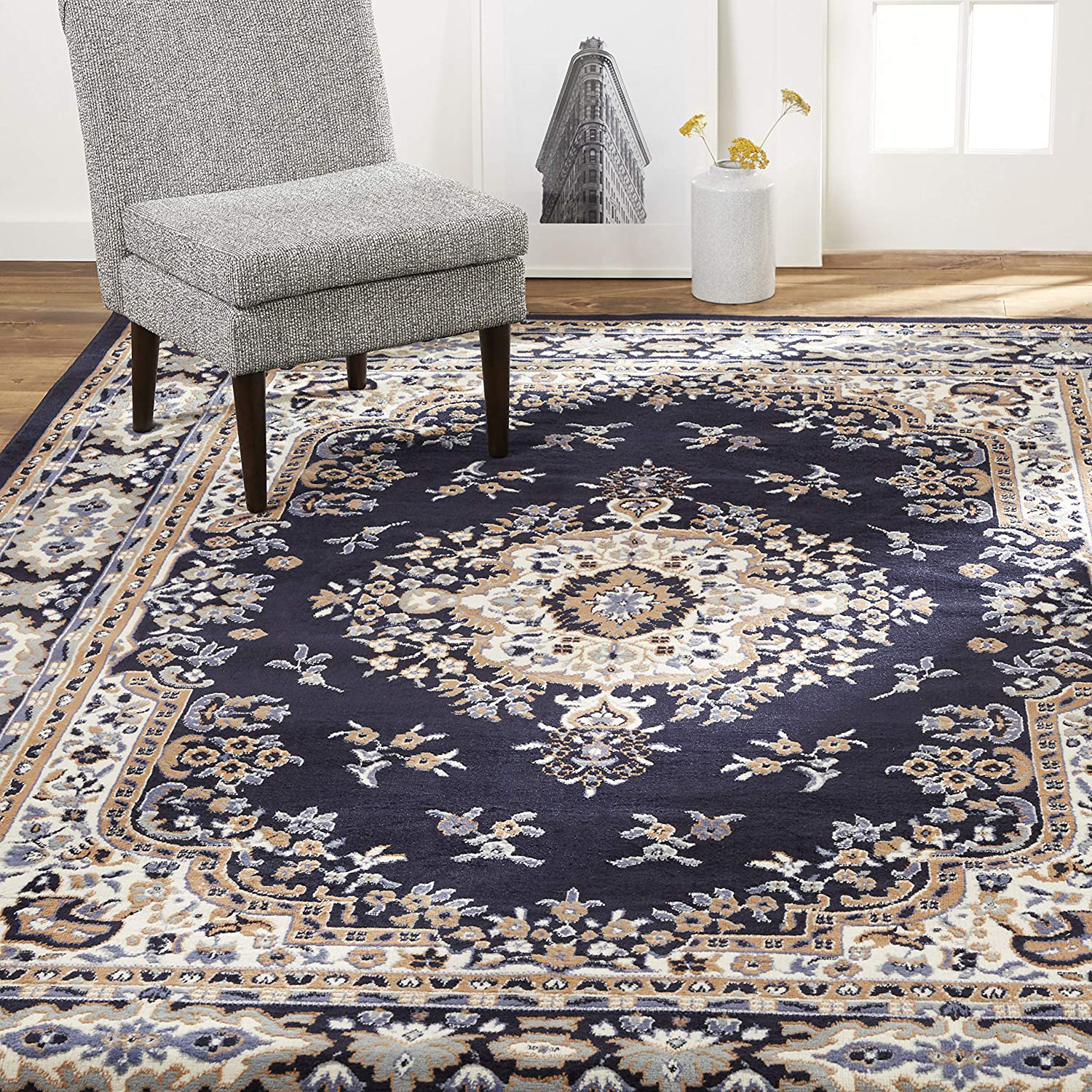 - One (1) Home Dynamix Premium Sakarya Traditional Medallion Border Rug, Navy Blue, 3'7"x5'2" Rectangle