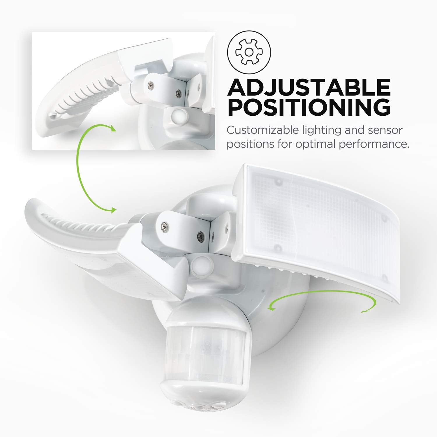 The new HomeZone Security LED motion sensor and Dusk to Dawn fixture are designed to enhance the security of your home using advanced, energy-efficient LED technology housed in durable, low-profile aluminum. With a sensor range of 240 degrees, this fixture provides extensive coverage, activating the lights with movement and turning off after a customizable delay that can be set from 5 seconds to 7 minutes. Featuring easily adjustable swivel heads, it serves as an excellent alternative to traditional lighting styles.