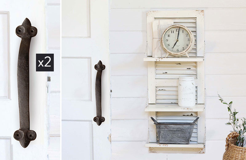 What could a duo of Vintage Iron Handles do for you? We envision them as perfect additions to those DIY projects that have been on your to-do list. Is there a table or dresser that lacks a bit of flair? These handles are an excellent way to introduce some character! Not into DIY? No problem, we all have that one wall yearning for a touch of affection, right?! How INCREDIBLE would these look beside your white ceramic decor, or paired with the baskets that have long desired some vintage iron companions! Is your bathroom in need of extra storage? FANTASTIC! Use these to hang towels or organize baskets for toiletries! Does your kitchen crave some classic rural charm? Well, say hello to the IDEAL ANSWER!