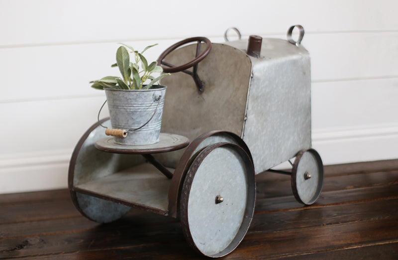 Picture the endless possibilities as the seasons change, this galvanized tractor with wheels will keep you on a creative roll!!! <3