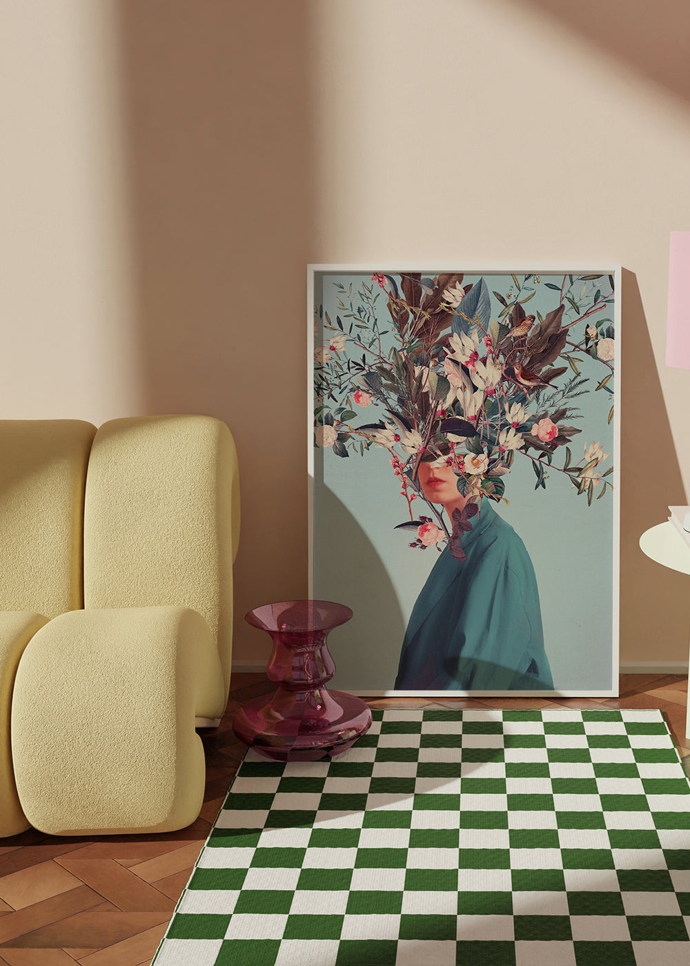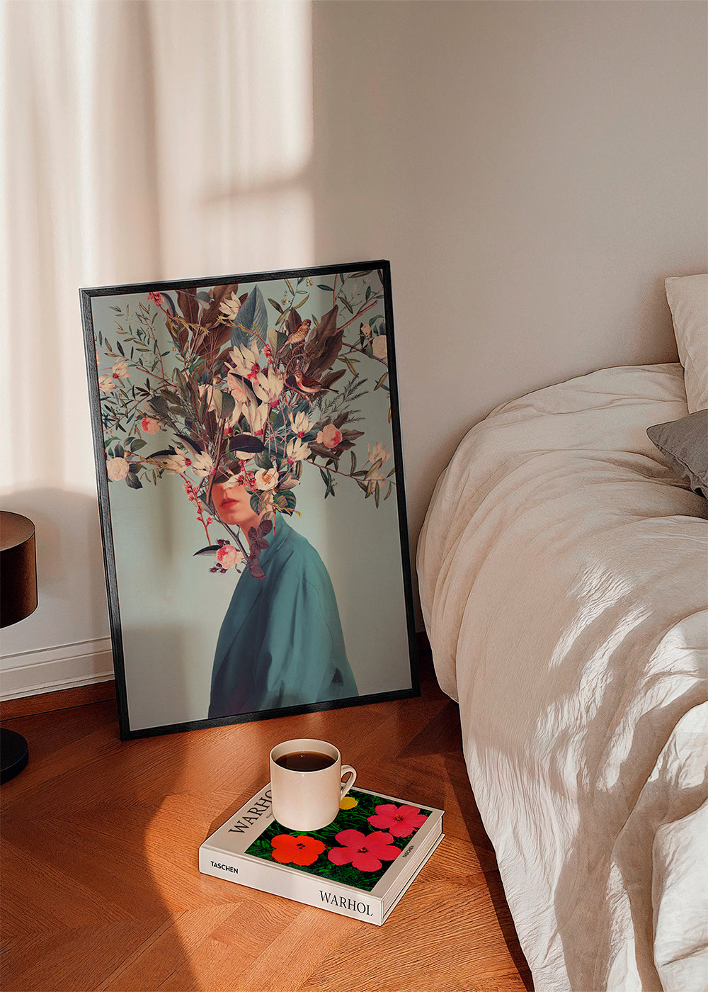 A poster from our collection of personal prints, created by Frank Moth, featuring a blue hue and portrait orientation. Peace, tranquility, serenity... Join the movement of mindful art with this design. A piece of art that adds significant value to any space.