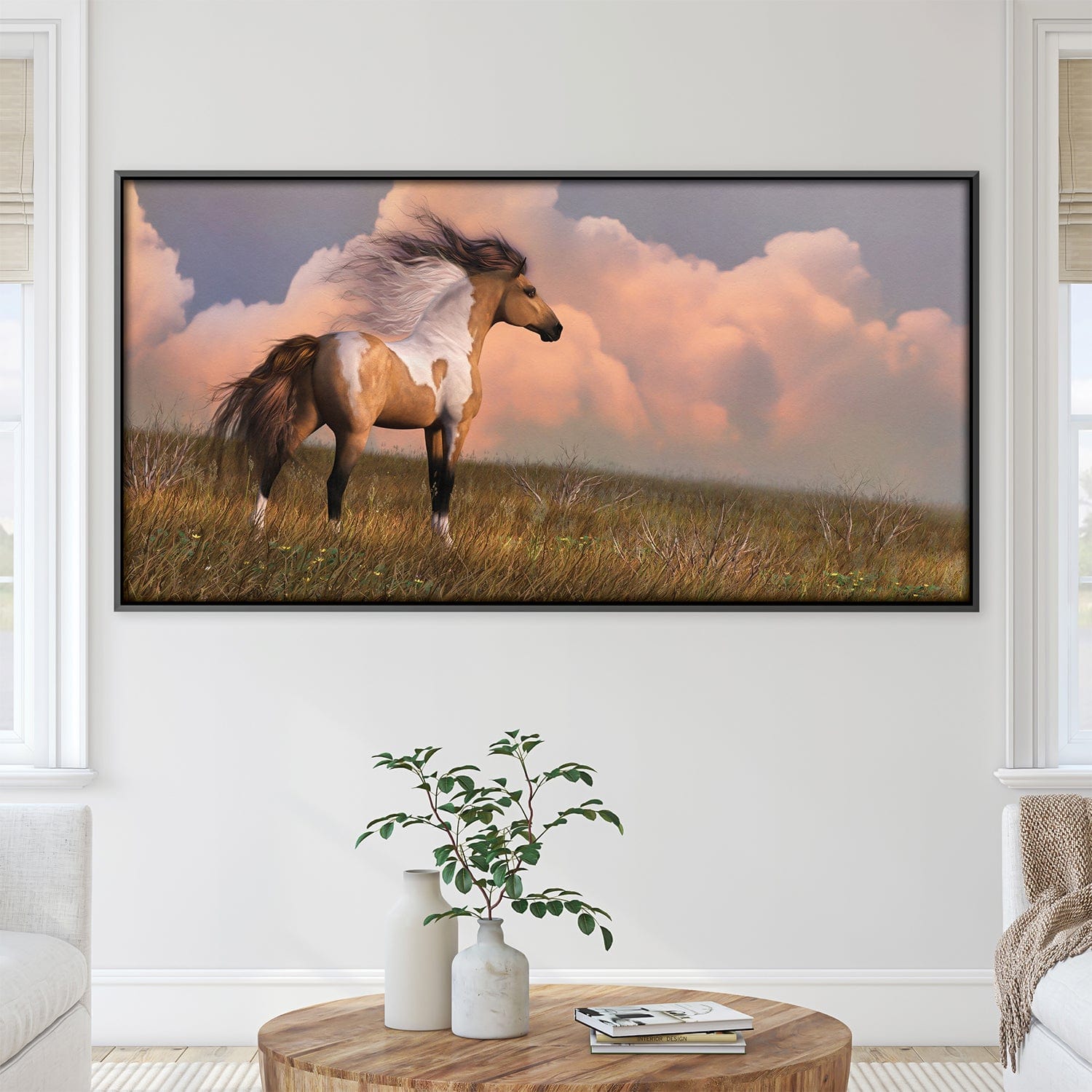 Add a chic touch of glamour to any bare wall in your home with this artwork. This canvas showcases an image of a horse standing in an expansive meadow. Artist: Laurie Prindle