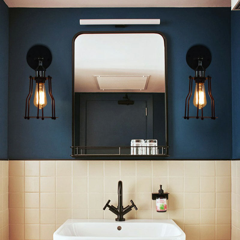 Rynx | Iron Cage Wall Light Retro Style 1 Head Living Room Wall Lighting Lamp in Black