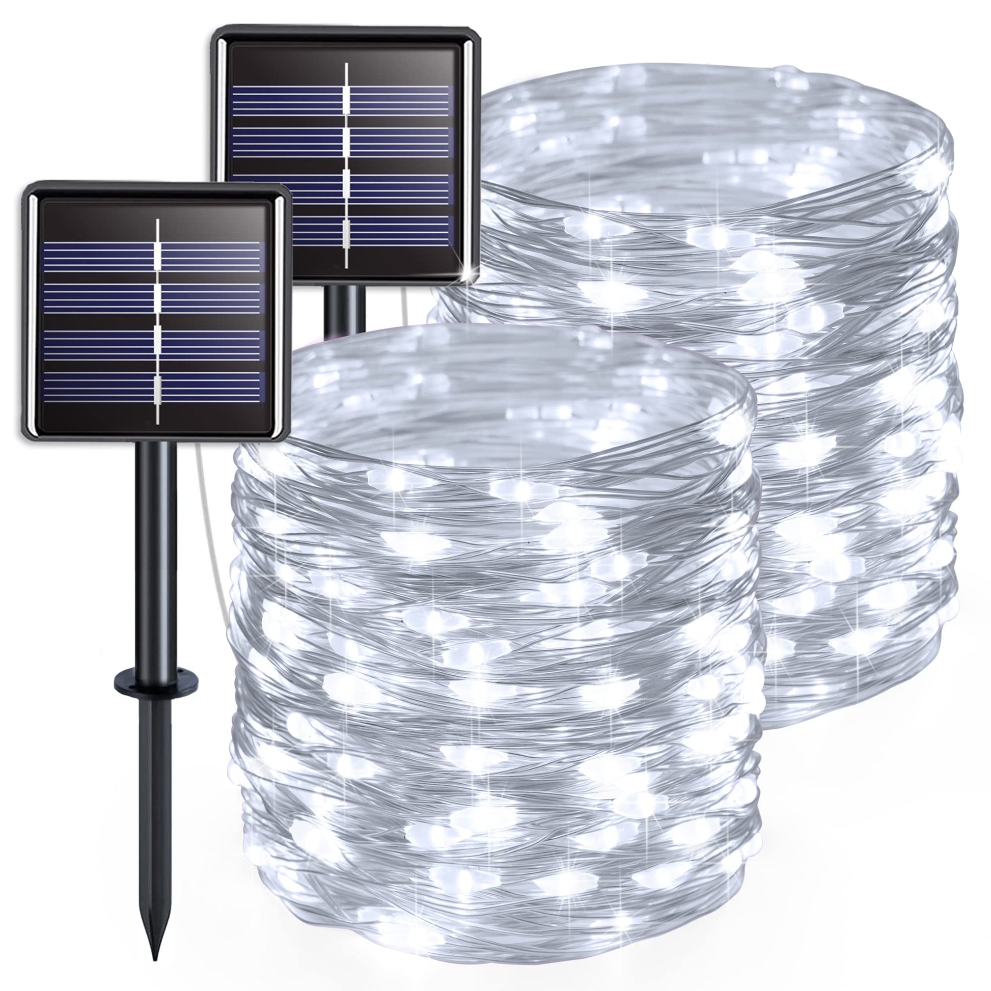 JMEXSUSS 2-Pack Solar String Lights for Outdoor Use Waterproof, Each 20 Meters 200 LED White Solar String Lights with 8 Settings, Copper Wire Solar Lights for Garden, Patio, Wedding, and Party Decorations