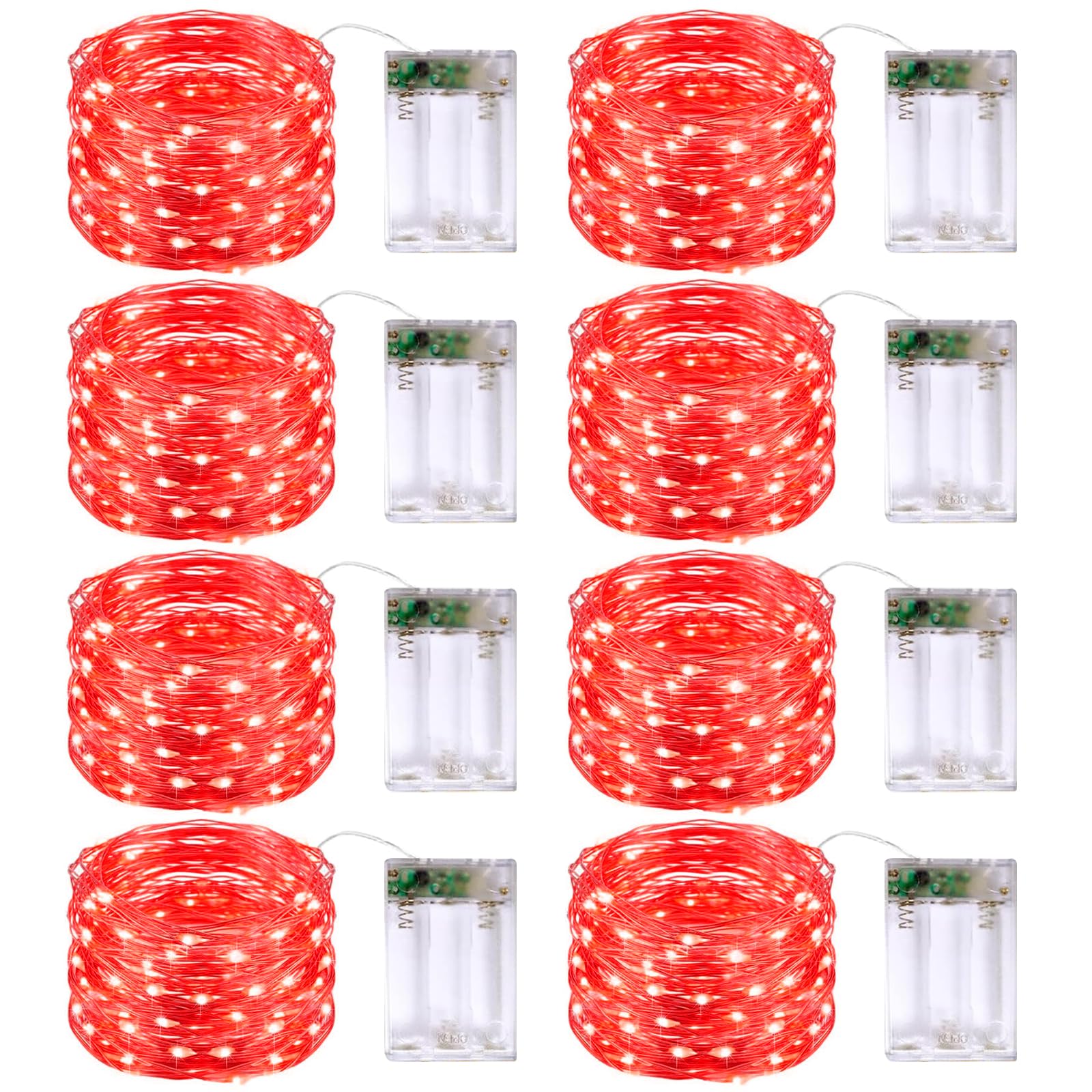 Rynx | Jmexsuss 8 Pack 50 Led Christmas Fairy Lights Battery Operated Light Strings, 16Ft Red Blinking Fairy Lights Indoor Outdoor Waterproof For Jar Bedroom Party Wedding Christmas Decorations