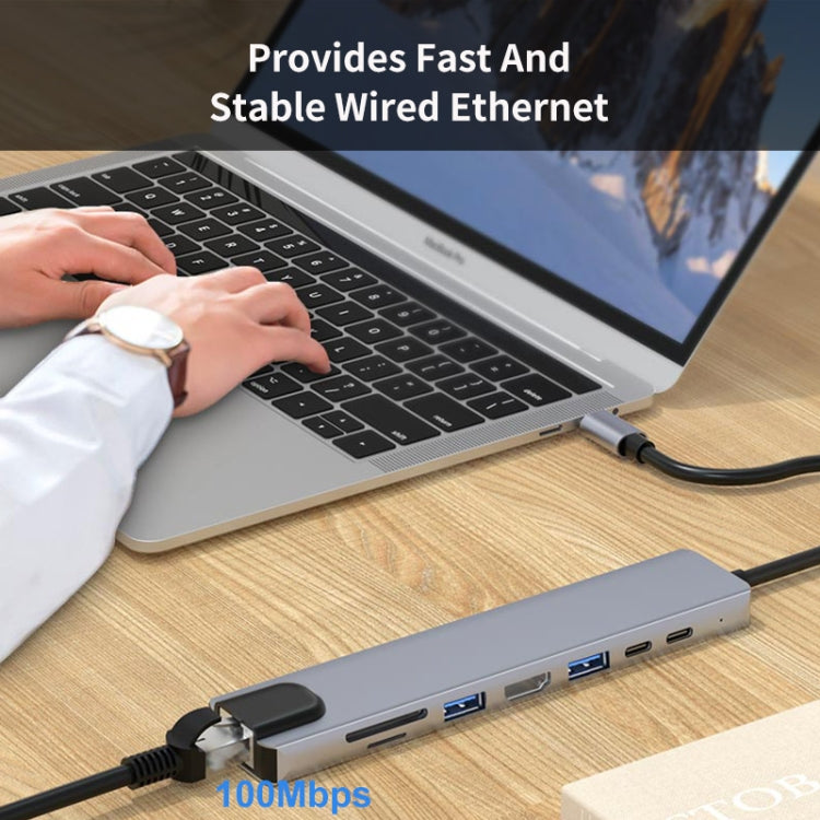 Rynx | JUNSUNMAY 8 in 1 Type-C to 4K HDMI / Ethernet Docking Station Adapter PD Fast Charging Hub SD/TF Card Reader