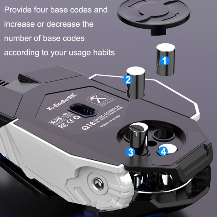 Rynx | K-Snake Q18 9 Keys 6400DPI Illuminated Machine Wired Gaming Mouse, Cable Length: 1.5m (Black)
