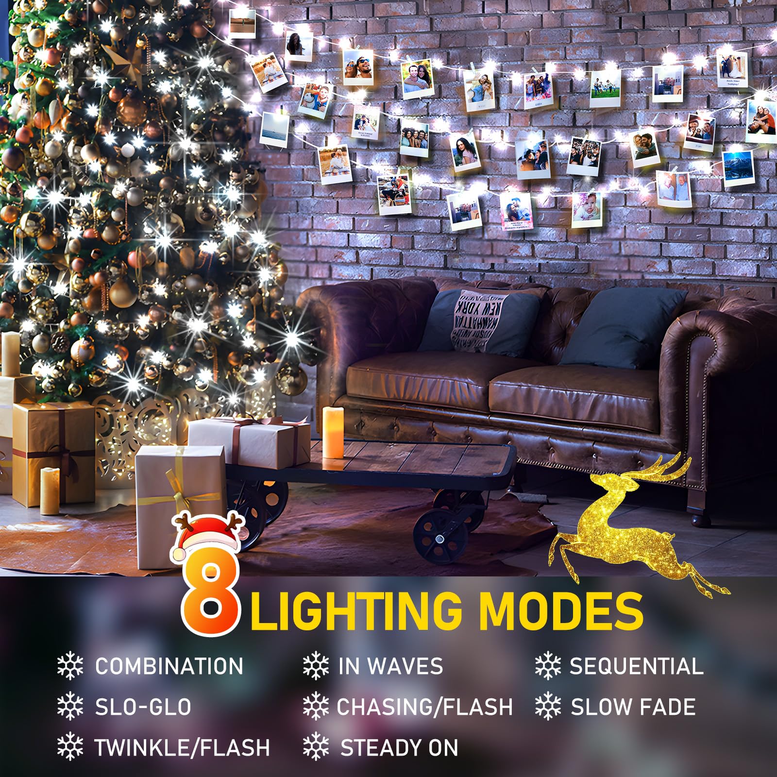 Transform your holiday decorations with the KNONEW 403FT Cool White Christmas Lights, expertly crafted to create a dazzling ambiance for all festive occasions. Constructed from durable copper and plastic materials, these lights feature 1000 bright LED bulbs that illuminate in 360 degrees, providing a soft glow to your space without being overwhelming. The extensive length of 120m (393.7 feet) makes it effortless to wrap around trees or drape over your home, while the 3m (9.84 feet) power cord offers ample reach to your power source. With an IP44 waterproof rating, they are ideal for both indoor and outdoor use, ensuring reliable performance against seasonal elements. Experience versatility with 8 distinct lighting settings, including steady lighting and various dynamic patterns, allowing you to adjust the lighting to suit the mood of any gathering. The built-in timer and memory function simplify setups by automatically storing the last selected settings for convenience. Additionally, with 4 adjustable brightness levels (100%-75%-50%-25%), you can create the perfect atmosphere, whether hosting a lively party or enjoying a quiet evening. Key Features: - **Ultra Bright and Long-lasting:** 1000 LED bulbs across 403 feet deliver exceptional brightness, perfect for decorating trees, gardens, and patios. - **8 Dynamic Lighting Modes:** Choose between steady lights or 7 variable modes to create the ideal ambiance for any occasion, from festive gatherings to tranquil evenings. - **Safe and Energy Efficient:** Powered by a low-voltage 29V output socket, the lights remain cool to the touch and are safe for children and pets. - **Waterproof and Durable:** With an IP44 waterproof rating, these lights withstand various weather conditions, making them perfect for year-round outdoor use. - **User-Friendly Design:** Simple plug-and-play installation with a built-in timer and memory chip for hassle-free operation and customizable brightness settings. Elevate your Christmas decorations with KNONEW Christmas Lights, where safety meets style, ensuring a magical atmosphere for every celebration.