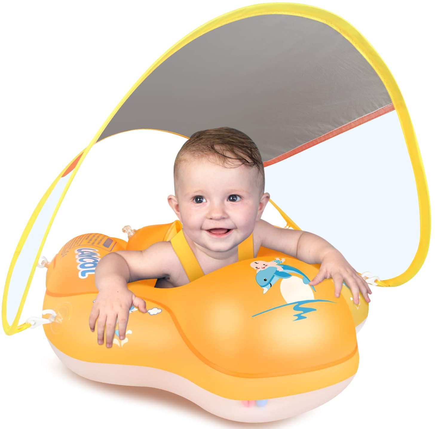 - One (1) LAYCOL Inflatable Baby Swimming Float Newest with Sunshade Canopy, adds tail without tipping over for children aged 3-36 months (Orange, L)