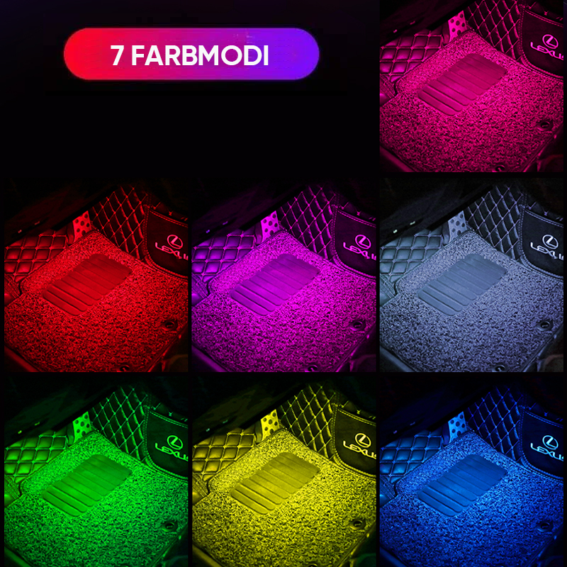 Just peel off the backing of the double-sided tape on each strip, and attach the LED strips under your seats or in the footwell.