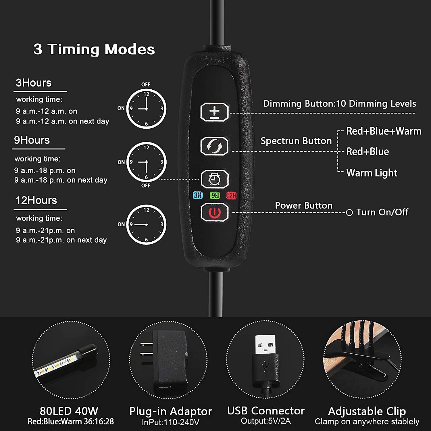 Introducing the LEOTER Grow Light, which boasts impressive specifications - it features a total of 80 light chips, comprising 36 red lights, 16 blue lights, and 28 yellow lights. The red wavelength measures at 660nm, the blue at 460nm, and the yellow spans from 380-860nm. Each light is meticulously engineered and calibrated to support optimal plant growth.