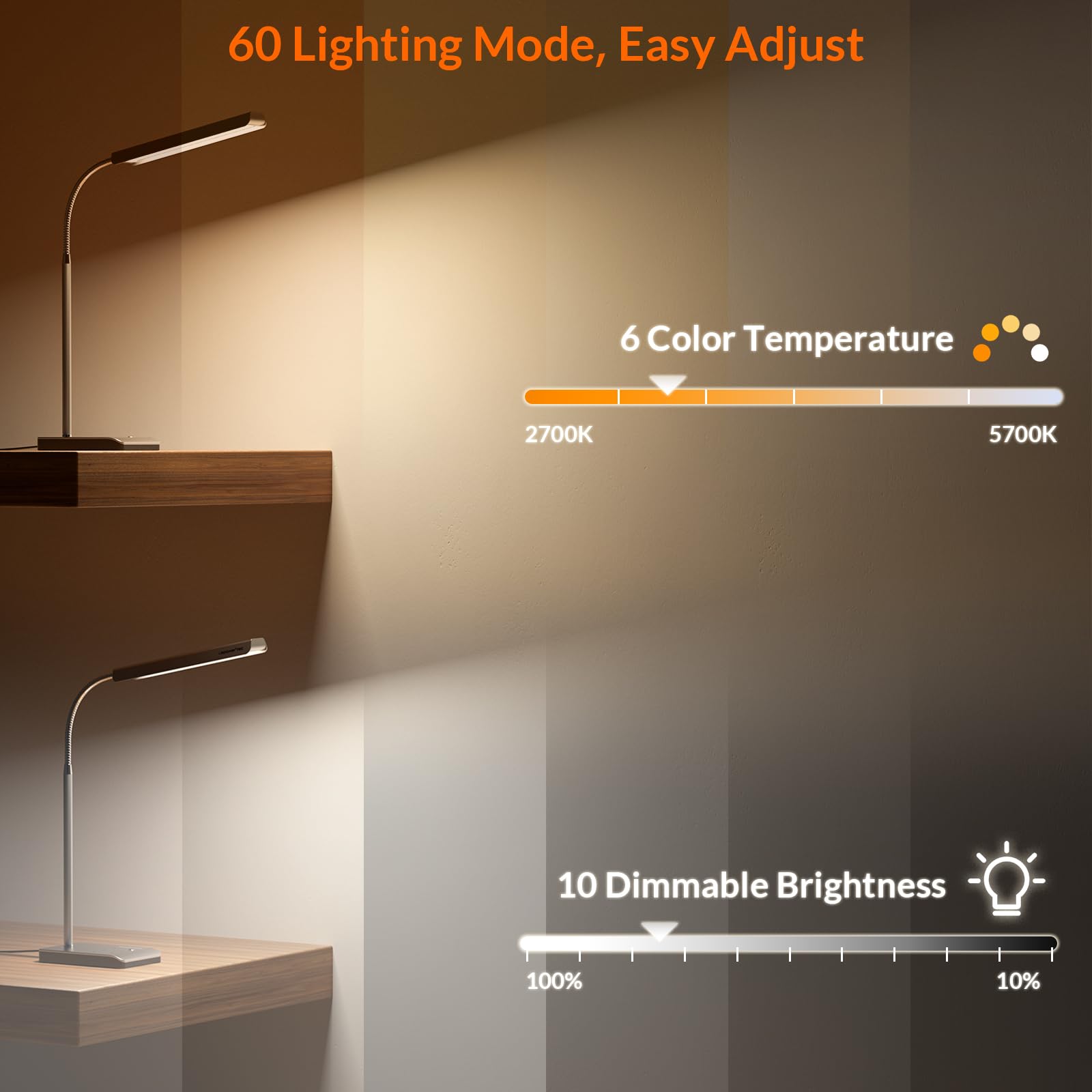 - **Enhanced Flexibility**: The innovative 360° metal gooseneck offers exceptional flexibility, allowing you to easily adjust the height and angle of the light. The sensitive touch panel enables effortless switching between settings for a personalized lighting experience.