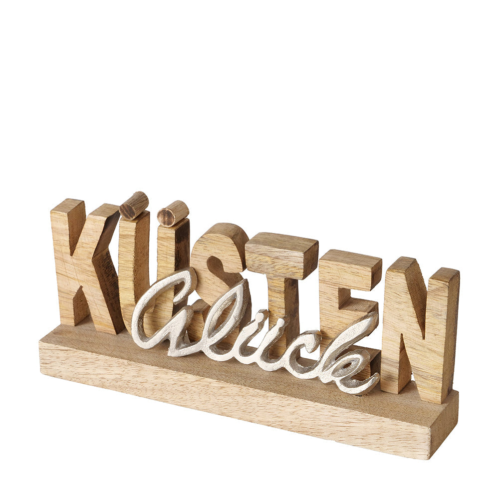 Your stylish home will embrace the essence of coastal bliss with this chic decorative sign. Allow this lettering to greet you in your entrance or use it as a contemporary and nautical focal point on your table, dresser, or sideboard. The decor piece stands at 10 cm tall and 4 cm wide, crafted from mango wood and aluminum.