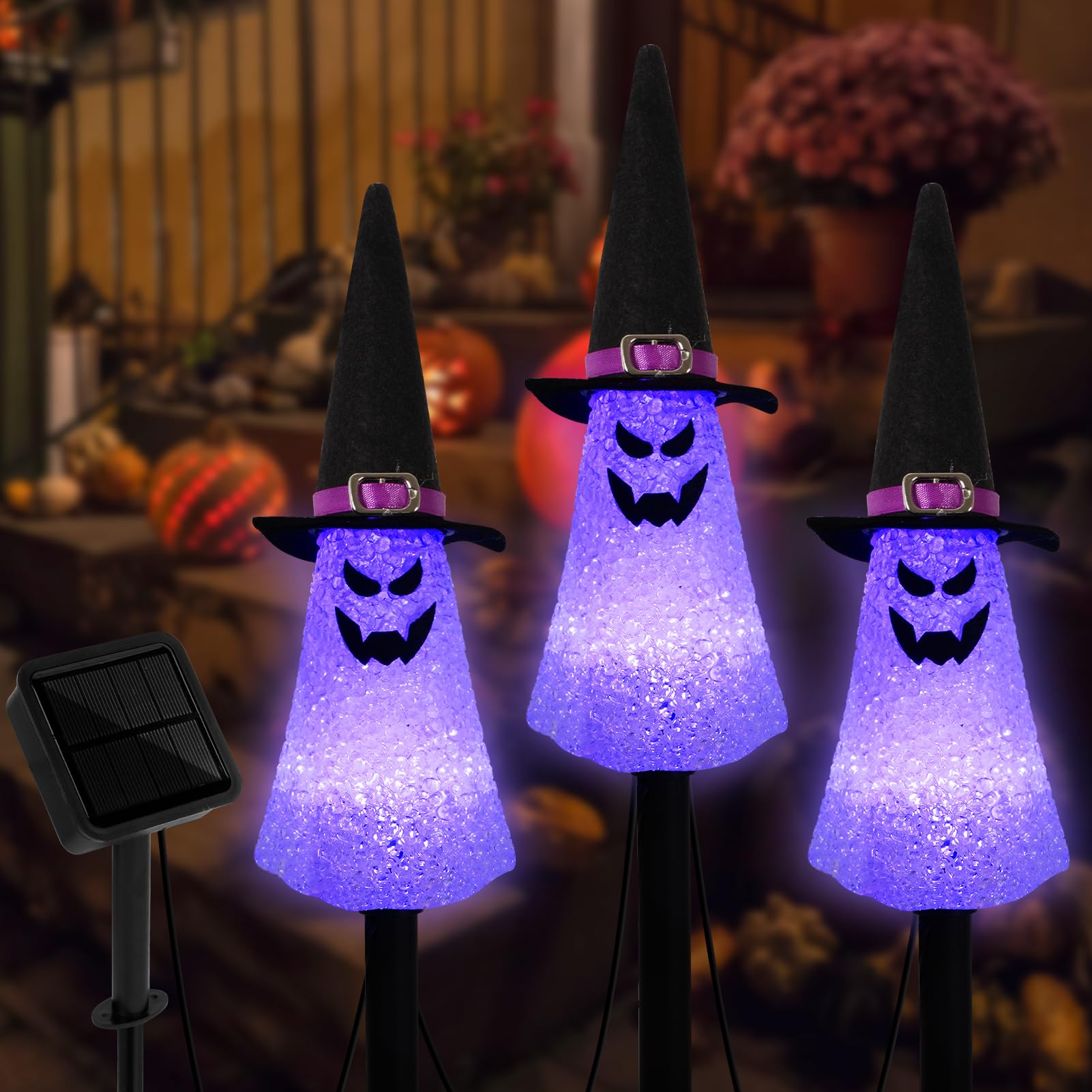 Rynx | Lightshine 3Pcs Ghost Solar Halloween Decorations, Solar Landscape Path Lights, Solar Halloween Garden Stake Lights, Outdoor Halloween Light Decor For Garden, Patio, Porch (Purple)
