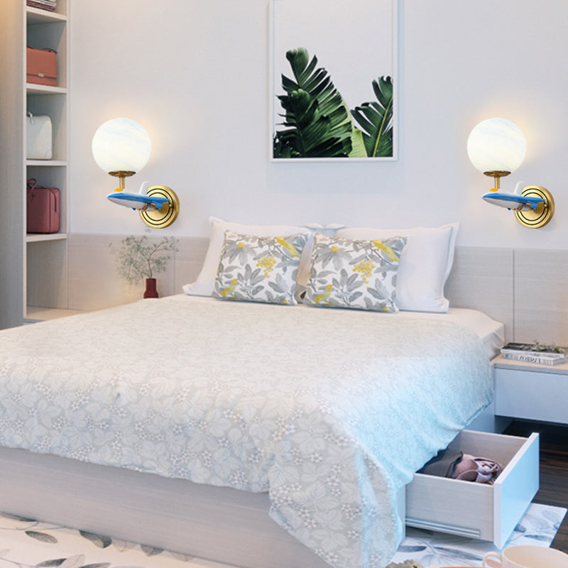 Rynx | Living Room Spherical Wall Lamp with Airplane Glass Resin Contemporary Wall Lamp