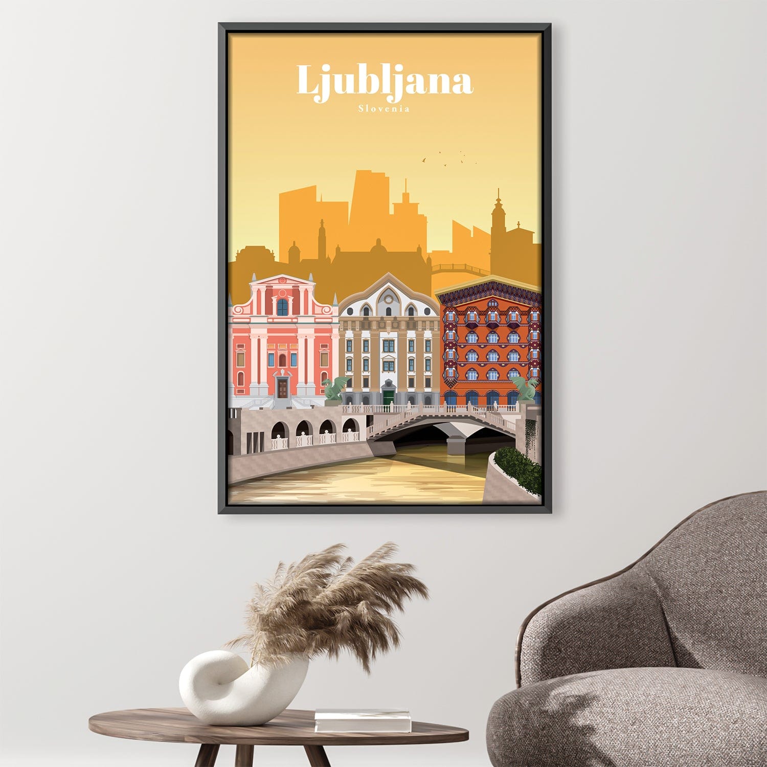 Add a touch of sophistication and allure to any empty wall in your home with this stunning print. This canvas showcases an abstract design of Ljubljana, Slovenia. Artist: Studio 324