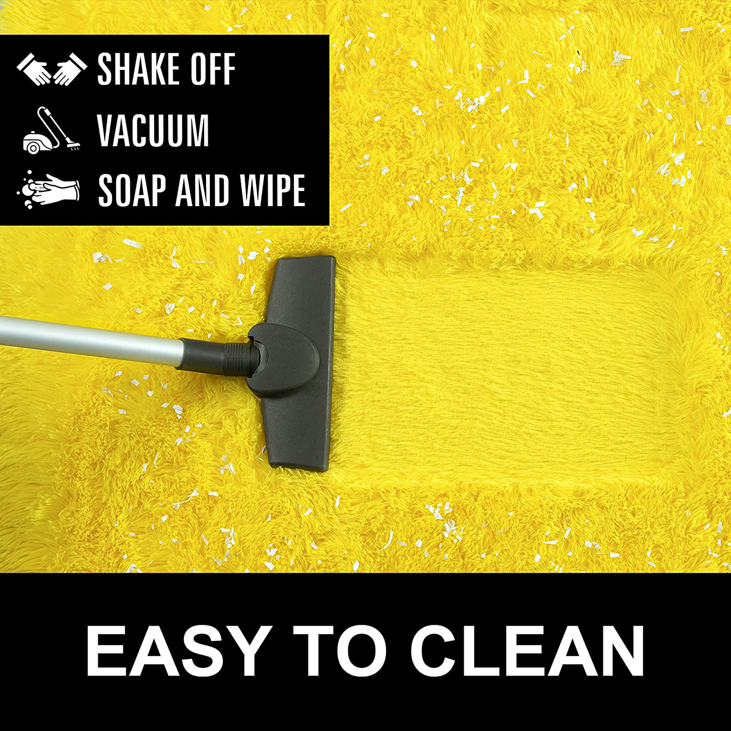 - Simply vacuum with a handheld vacuum; for deeper cleaning, wipe with a damp cloth. Allow the shag rug to dry completely before next use. Do not bleach. The rug is packaged in a vacuum bag and will regain its thickness within two days.