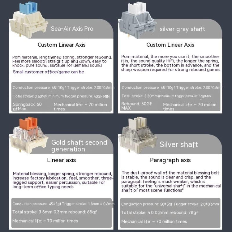 Rynx | LANGTU LT104 Mechanical Keyboard Backlight Display Flexible DIY Keyboard, Style: Wired Single Function Mode Gold Switch (White)