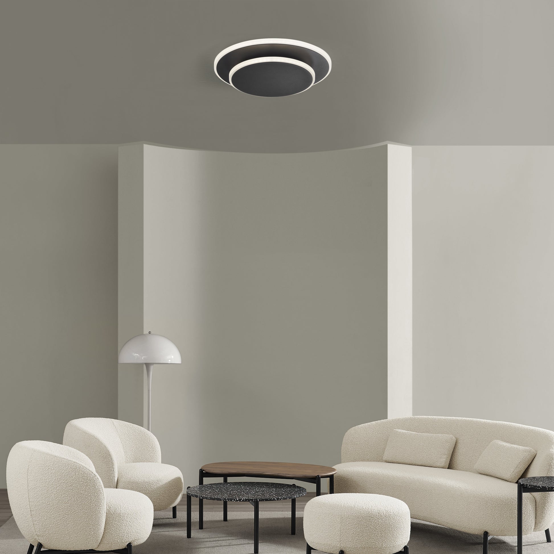 It offers versatility and can serve various purposes; you can mount it as a wall light in hallways, next to mirrors in bathrooms, or as a ceiling fixture in bedrooms, small kitchens, living rooms, and other areas with low ceilings. The second circle can be adjusted away from the main circle, just as the moon moves during a solar eclipse. This feature allows you to customize the brightness to your liking, whether you want more light or less, along with varying the overall length of the lamp.