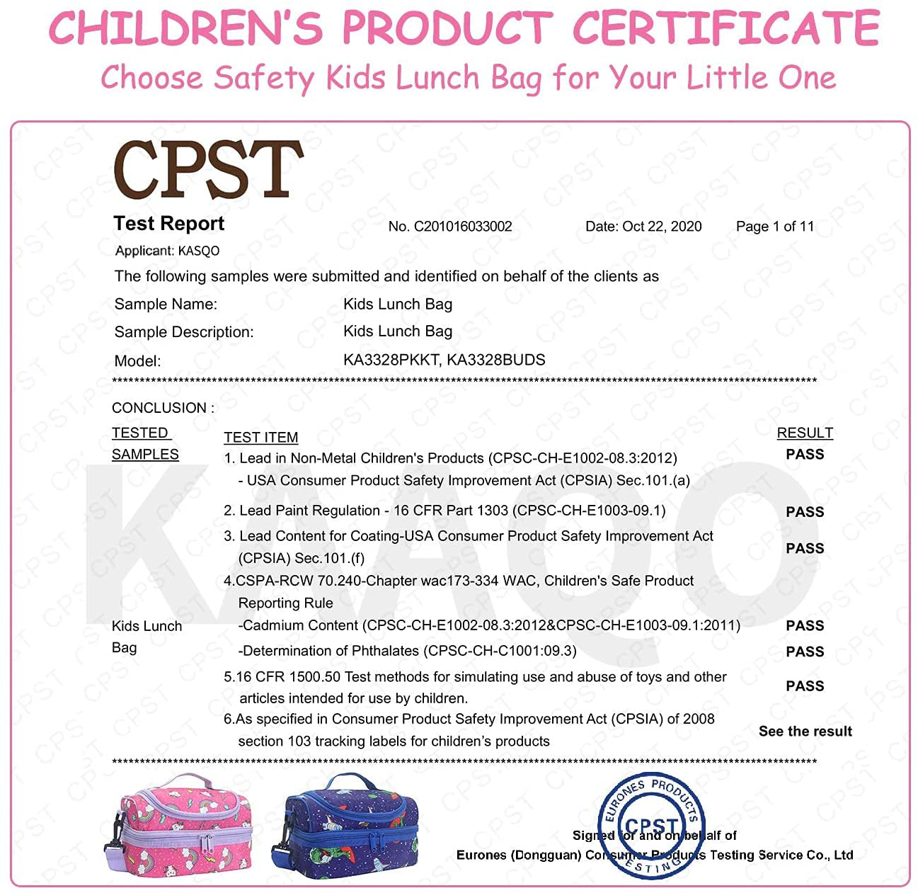 - High Quality & Lightweight: The exterior of the Kasqo kids' lunch bag is crafted from durable polyester which is lightweight and water-resistant, ensuring that your belongings stay dry. The thick insulation inside the bag keeps your food fresh (either hot or cold) for a significant period, while the interior is smooth and easy to clean. Each bag includes two compartments for effortless food and item storage.