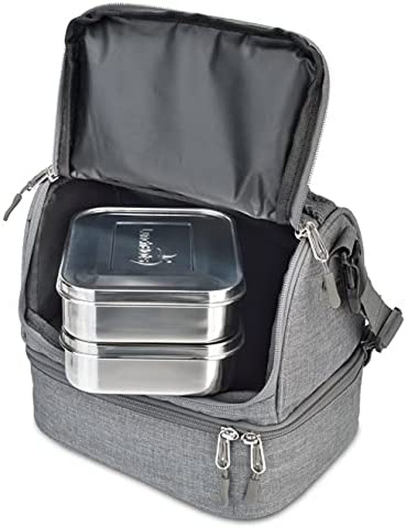 - THE PERFECT BENTO BAG: The adaptable top section is ideal for fruit, a water bottle, or our thermal containers. The bottom section is specially crafted for one of our large Bento boxes to lie flat, minimizing the chances of accidental spills.