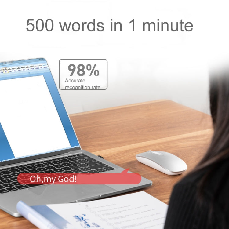 Rynx | M103 1600DPI 5 Buttons 2.4G Wireless Mouse Charging Ai Intelligent Voice Office Mouse, Supports 28 Languages (Silver)