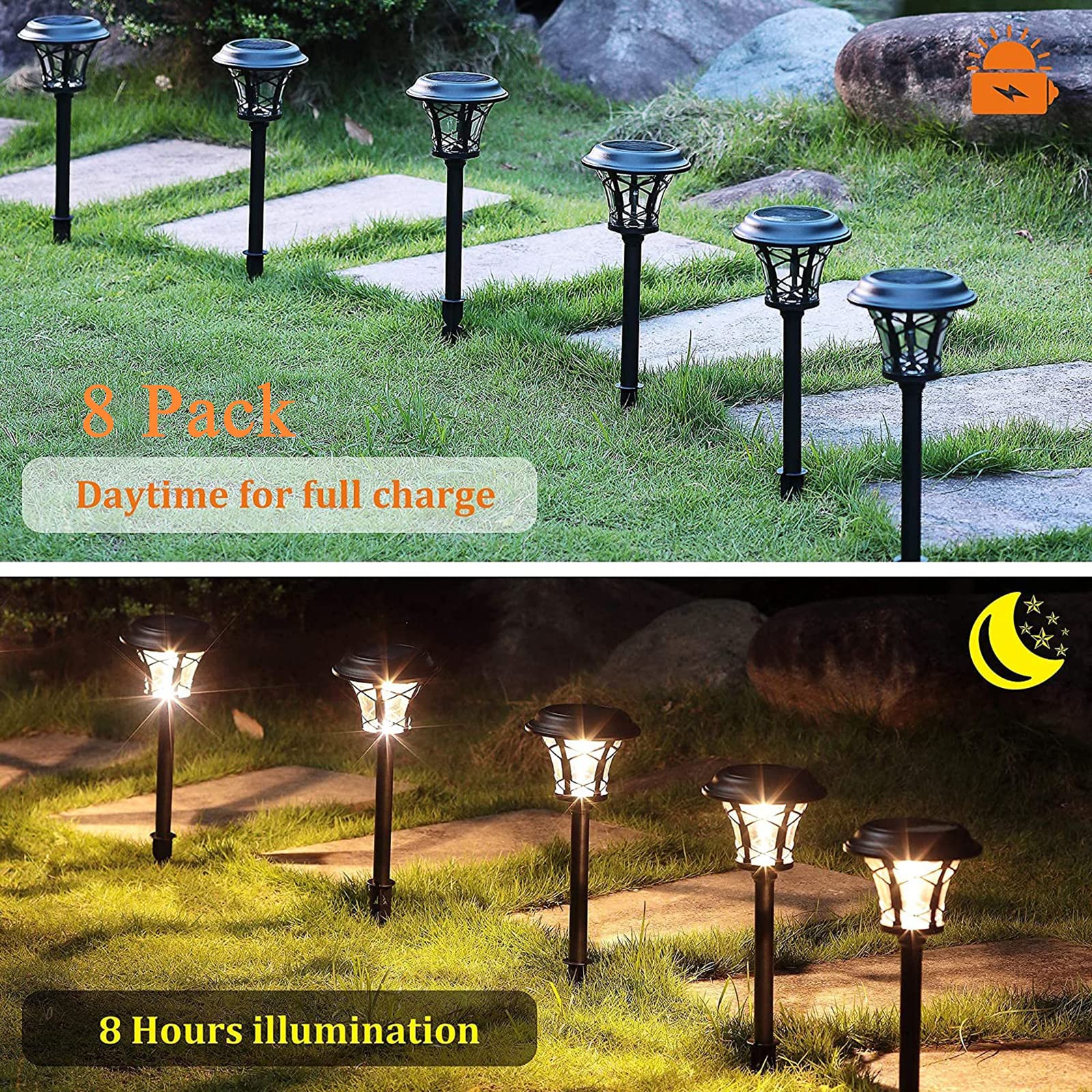 Rynx | Maggift 8 Pack Solar-Powered Path Lights, 25 Lumen SMD LED, Stainless Steel & Glass, Waterproof