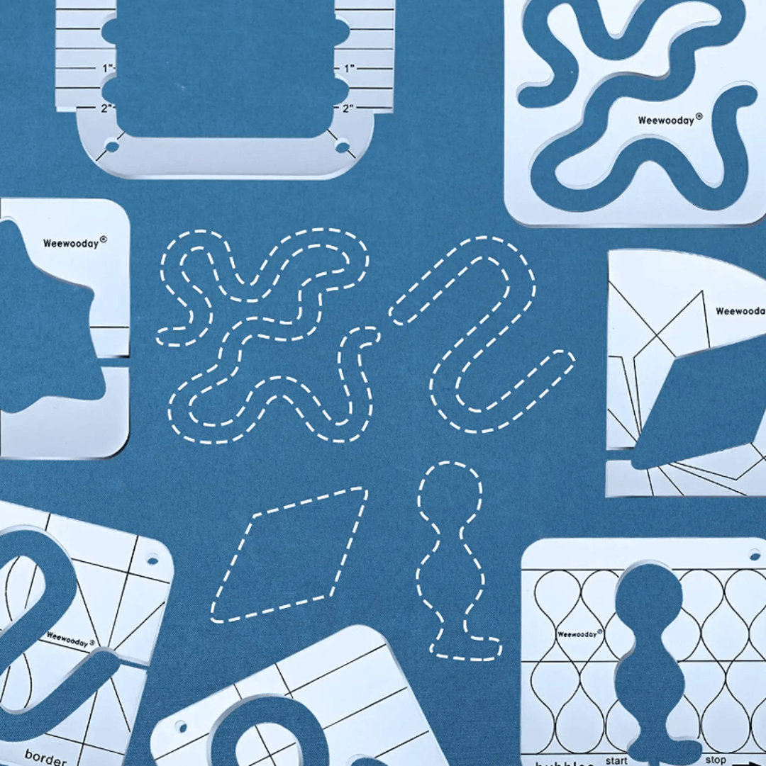 Our Free-Motion Quilting Template Set (11 pieces) encompasses a diverse range of shapes that allow you to tap into your imagination and creativity.