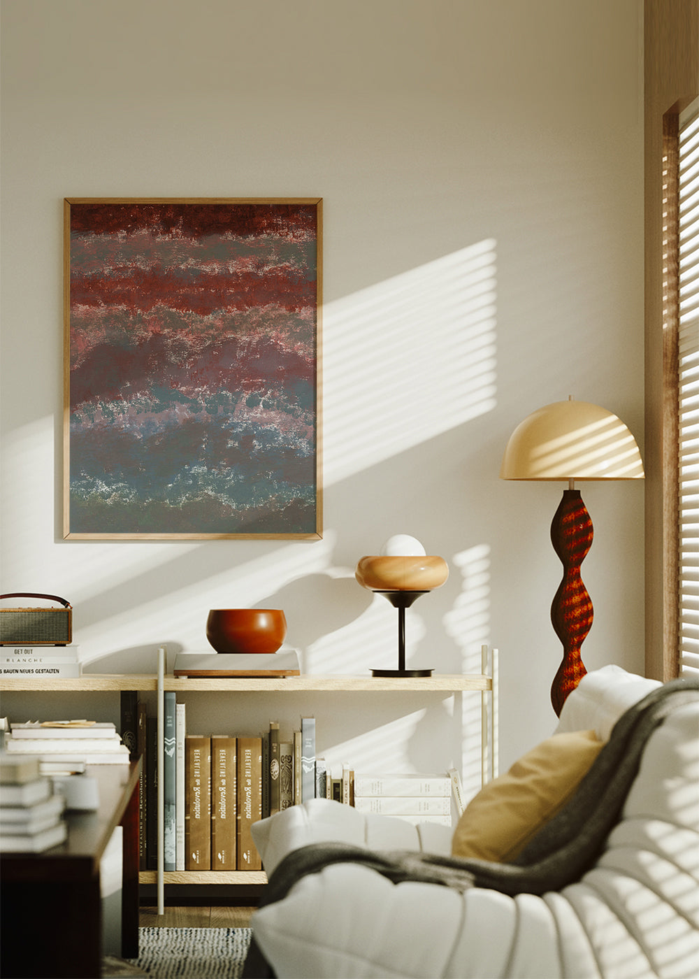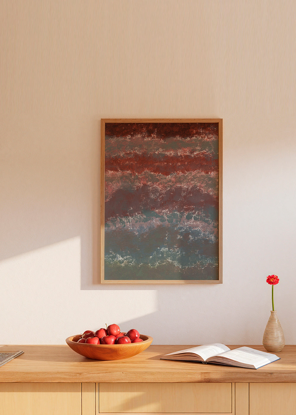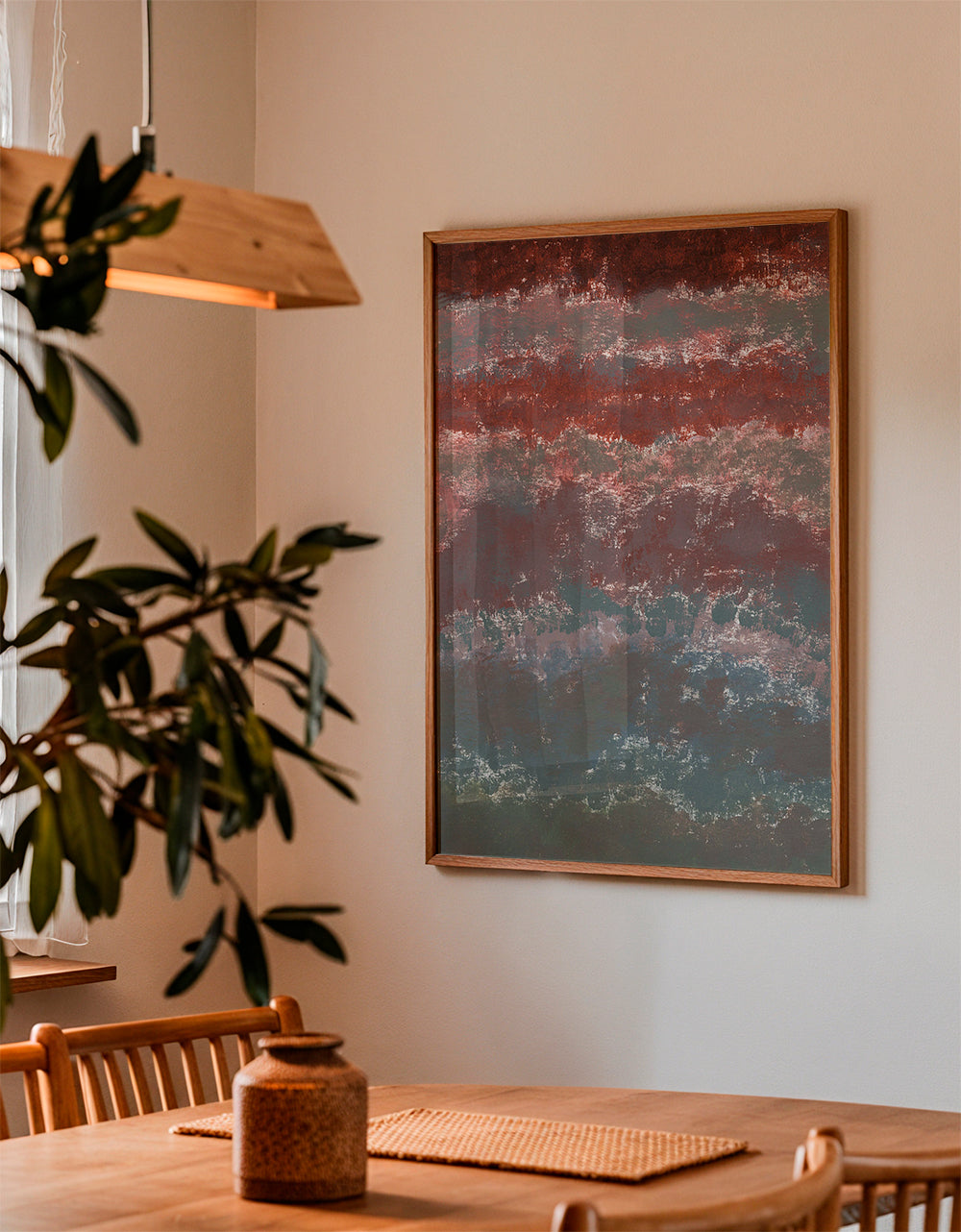 This artwork is part of the abstract wall art and print style, created by Elena Camacho Art, in vibrant shades of red and ideal for vertical display. Using abstract prints in decoration is a fantastic way to give your home a personal touch. A blank wall can be sad, but with some prints, we can transform it into something truly remarkable.