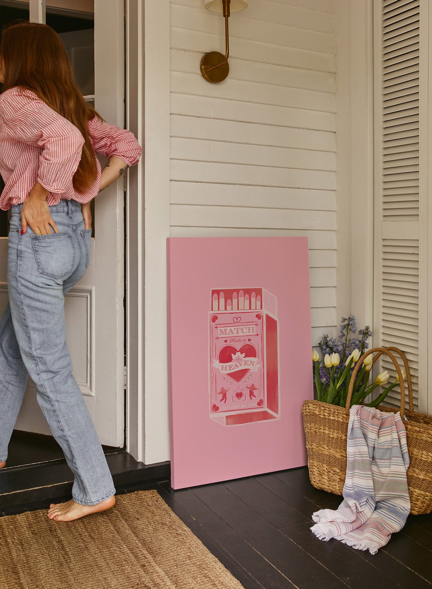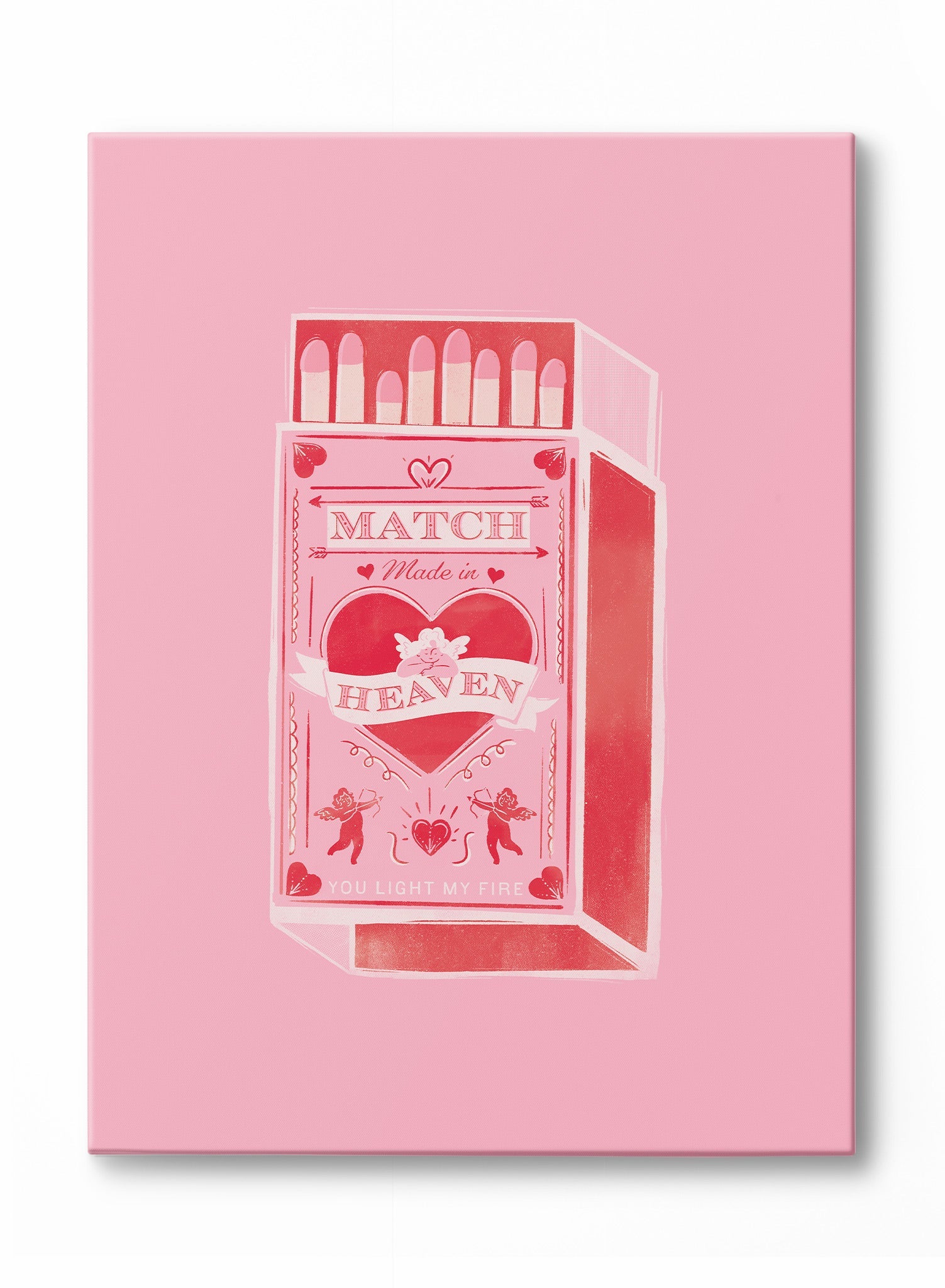 This vibrant artwork introduces a delightful mix of fun and romance with its vintage-inspired matchstick theme, showcasing the playful phrase “Match Made in Heaven.” The lively shades of pink and intricate details, featuring cherubic figures and a striking heart motif, evoke nostalgia and celebrate connection.