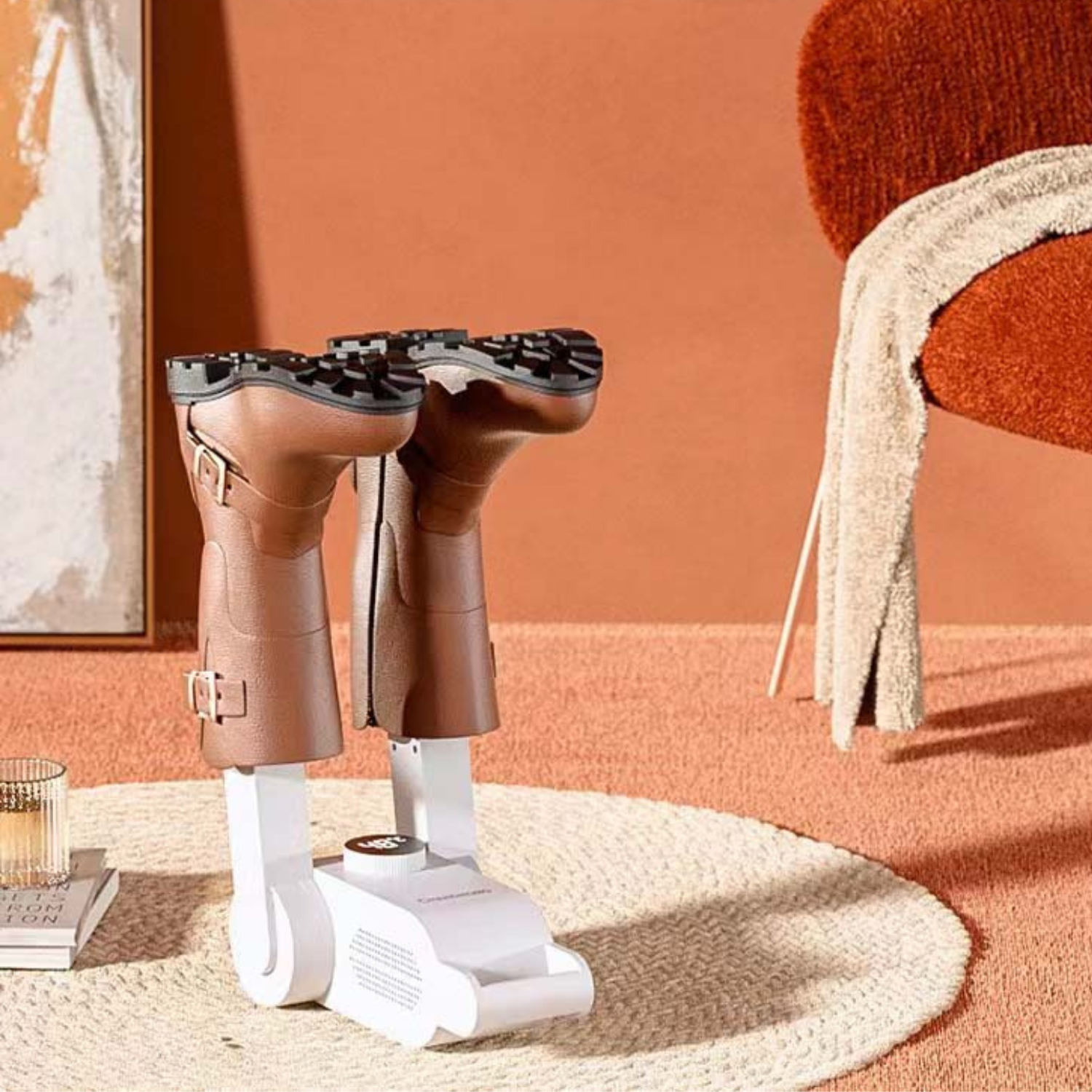 Our shoe dryer effectively dries your footwear while eliminating odors and bacteria. With its innovative design, it folds up and occupies minimal space when not in use.