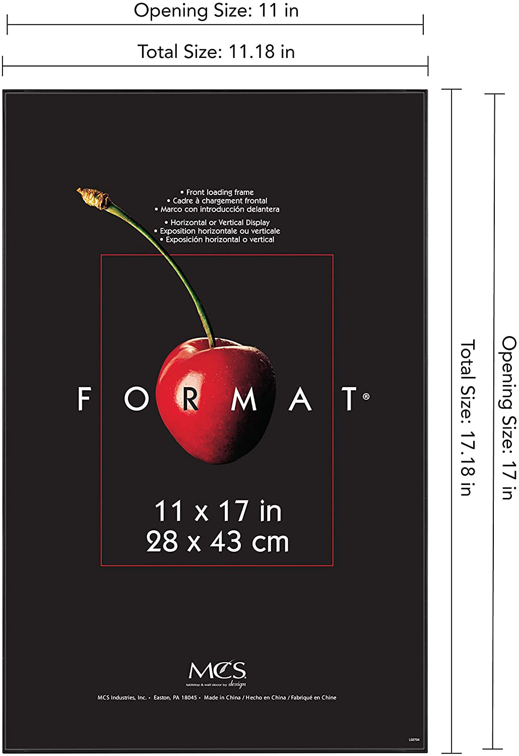 The MCS Original Format Frame is a straightforward and functional black frame, making it easy to frame your pictures, documents, or artwork. This set of wall frames includes 6 - 11 x 17 inch matte black Format Frames. For easy display, simply remove the smooth glass cover, insert your desired medium, and put the glass cover back in place. Each frame has molded keyholes for simple vertical or horizontal mounting. (Instructions included). The Original Format Frame is our best-selling picture frame of all time. Its minimalist, modern design will never go out of style and is always available at a great price. Format is a registered trademark of MCS Industries, Inc.