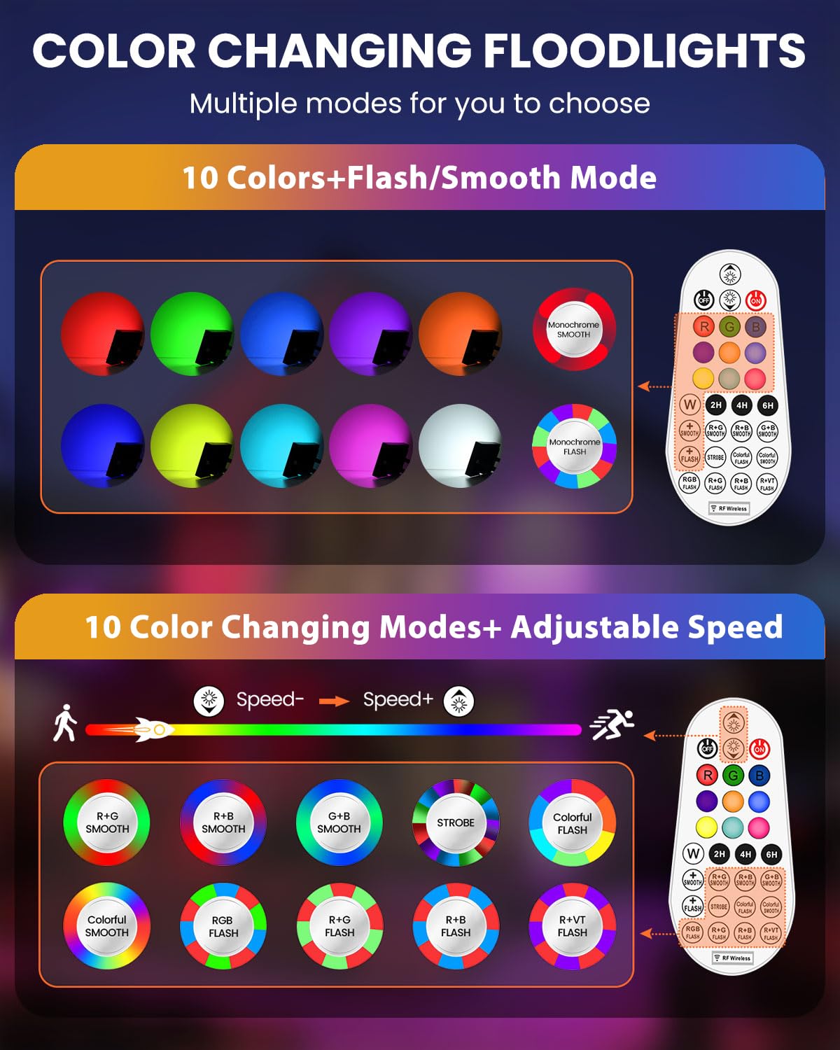 Rynx | Meikee 25W Rgb Led Floodlight - 2500Lm, Ip66 Waterproof, Dimmable, 4 Pack