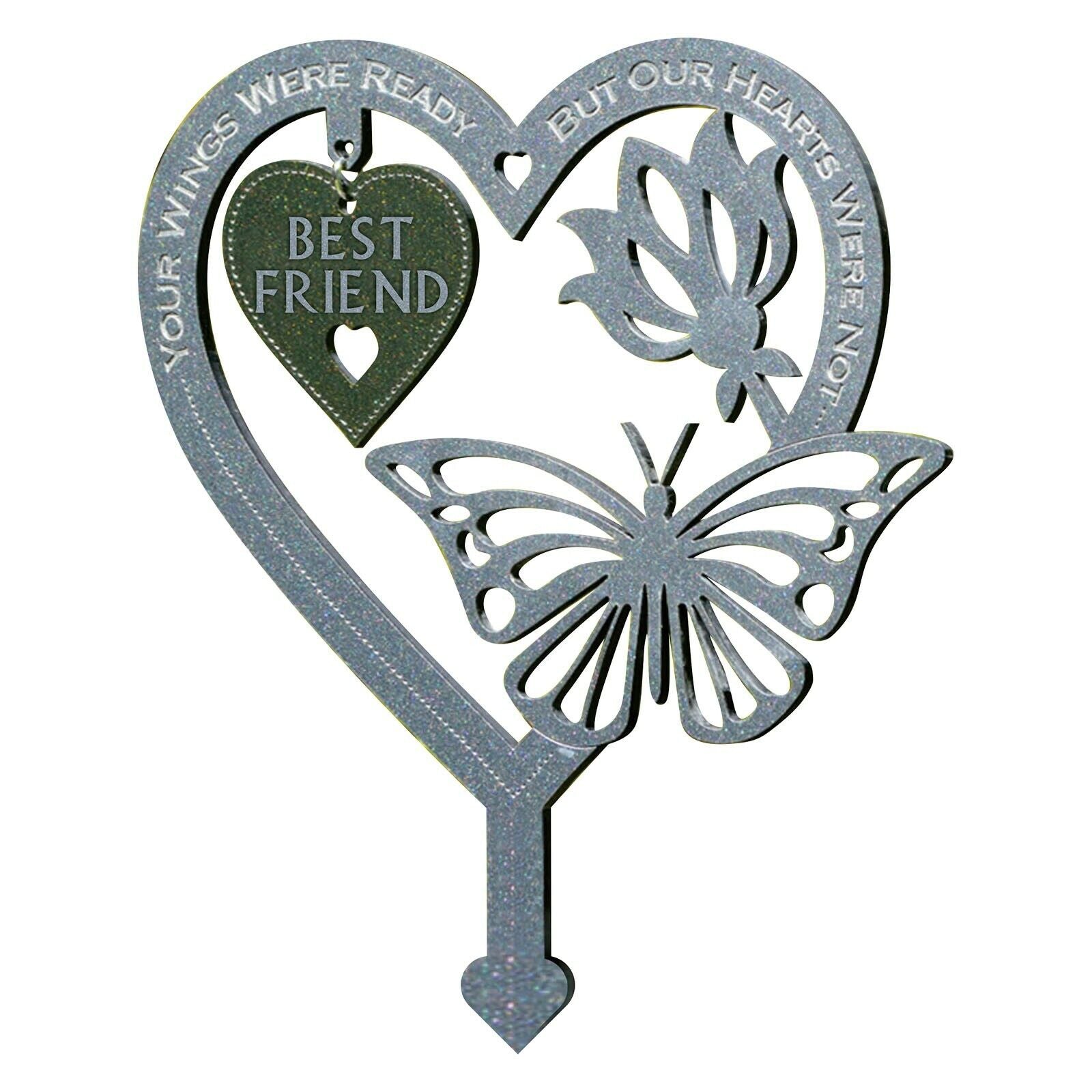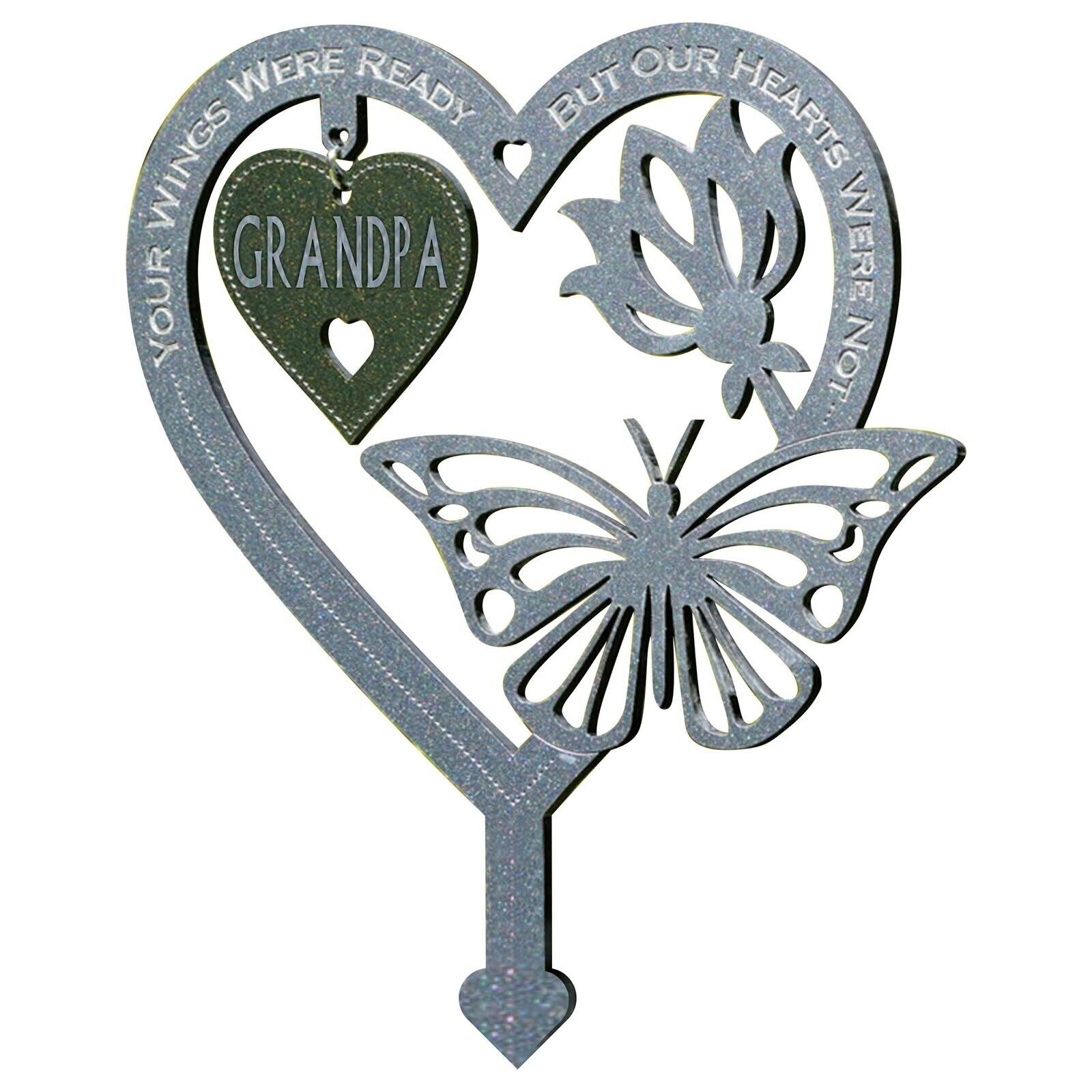 A lovingly designed memorial decoration that serves as a tribute to those who have passed. The personalized heart & angel feather made of weather-resistant and shatterproof metallic silver and gold acrylic is perfect for year-round outdoor display.