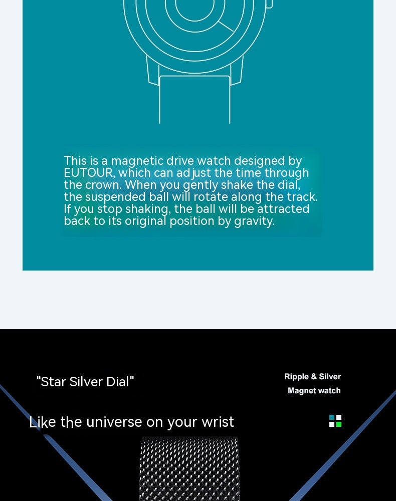 Rynx | Men's magnetic watch quartz original strap 40mm stainless steel strap