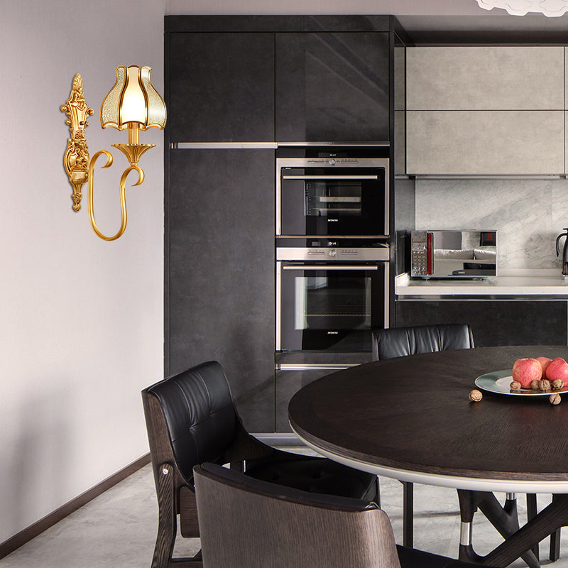 Rynx | Metal Brass Wall Lamp Curvy 1/2 Cups Traditional Wall Mount Lamp for Living Room