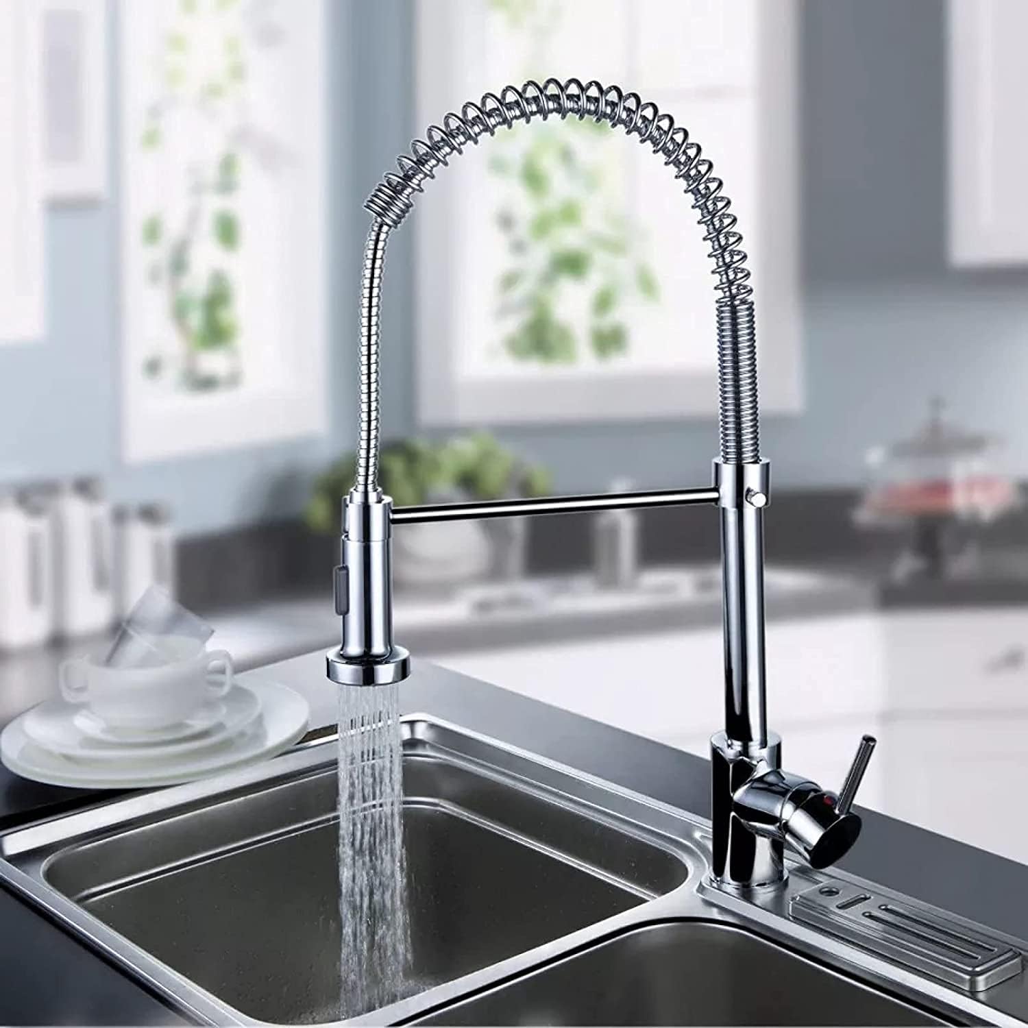 MHome Retractable Kitchen Faucet in Chrome with Filter Booster, Brass Mixer Tap, Hot and Cold Water, Single Hole Installation