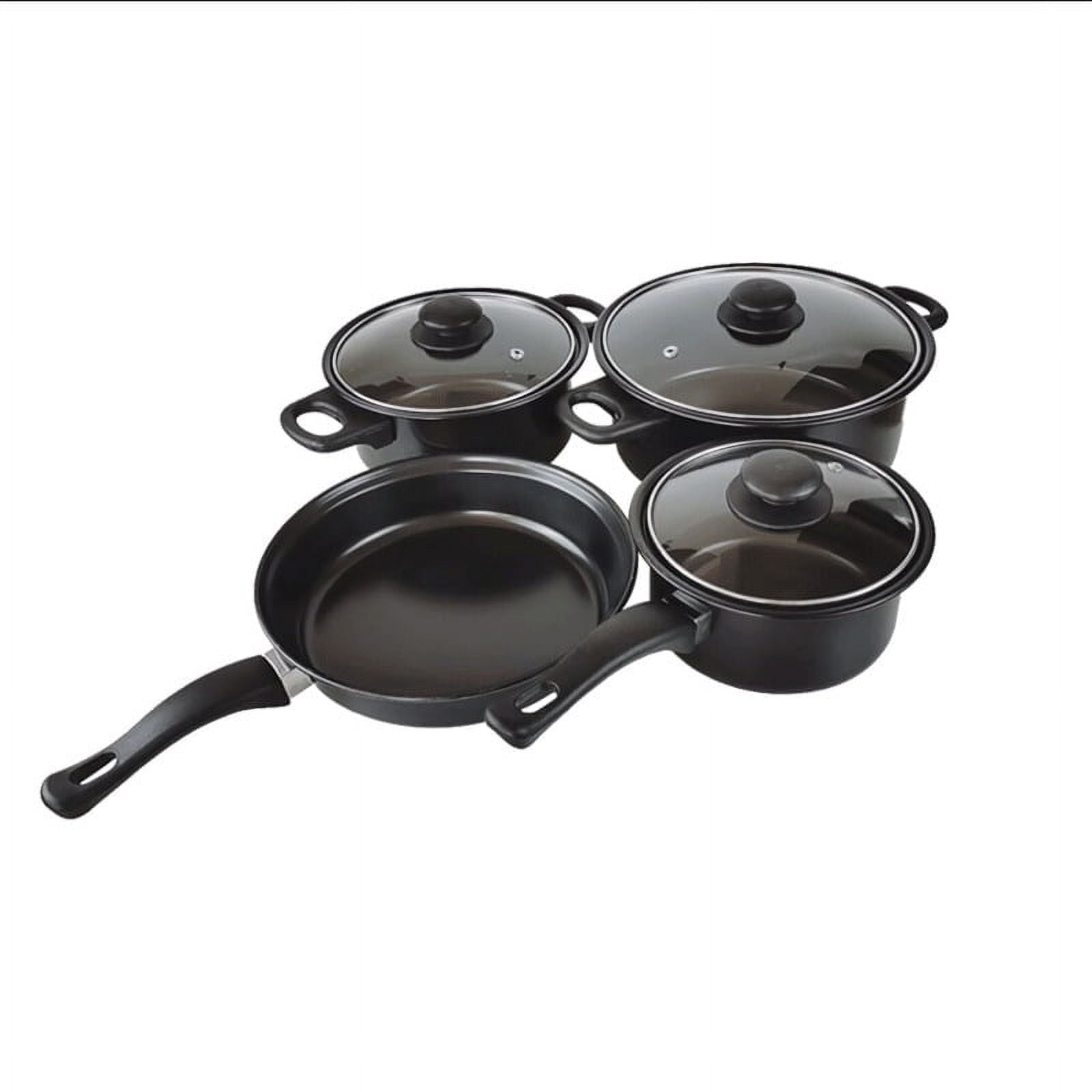 - Diverse Cookware: Including a frying pan, cooking pots, and a soup pot.