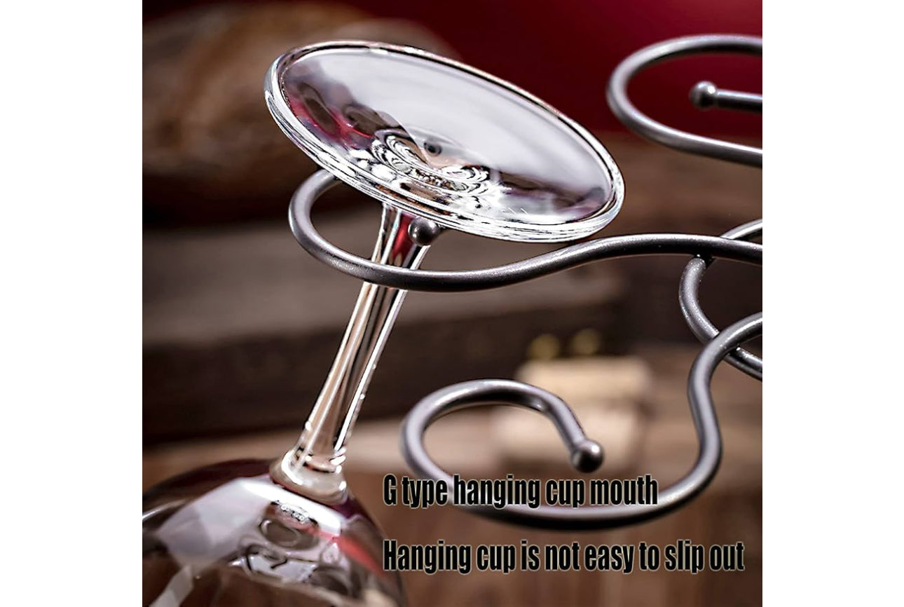 Rynx | MHome Wine Glass Hanging Rack with 6 Hooks, Metal Iron Free-standing Wine Holder, Bronze, Black, Wine Glass Rack for Kitchen Counter, Multifunctional