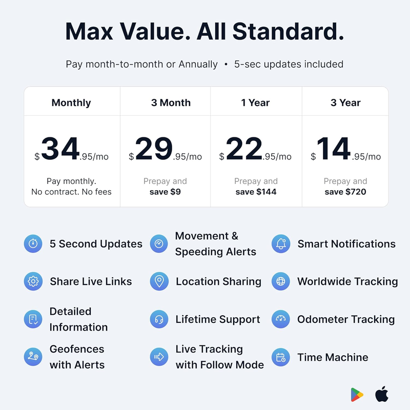 - LOW-COST PLAN REQUIRED: Quickly download our user-friendly app. Activate the device, choose your plan, and start tracking. Subscriptions are available from as low as $14.95/month. Get 24/7 support for GPS trackers with an active subscription. Global coverage - update network mode in the app before traveling abroad.