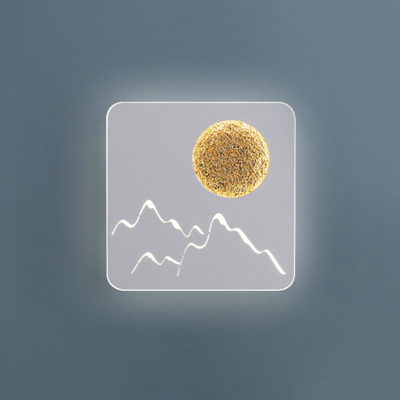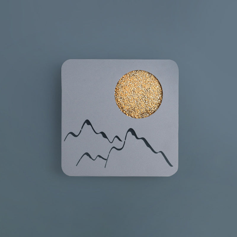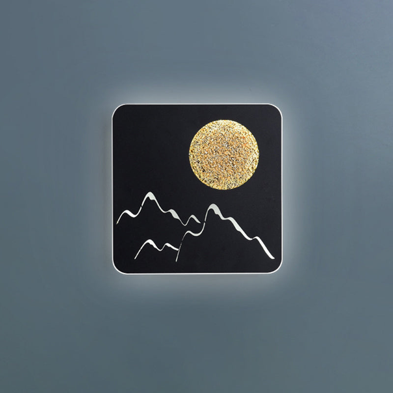 Rynx | Mini Round/Rectangle Slim LED Ceiling Light Nordic Metal Bedroom Wall Lamp Sconces in Black/White/Grey with Full Moon Mountain Pattern