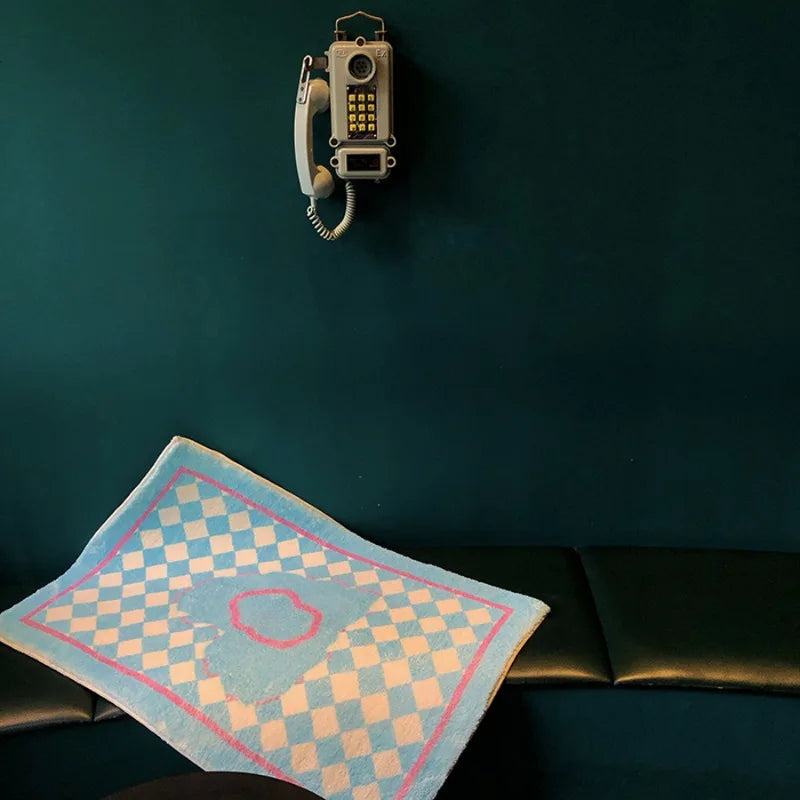 Rynx Minimalist Checkered Pattern Large Decorative Carpet for Living Room Blue Chessboard Soft Plush Nightstand Rug Bedroom Balcony Mat