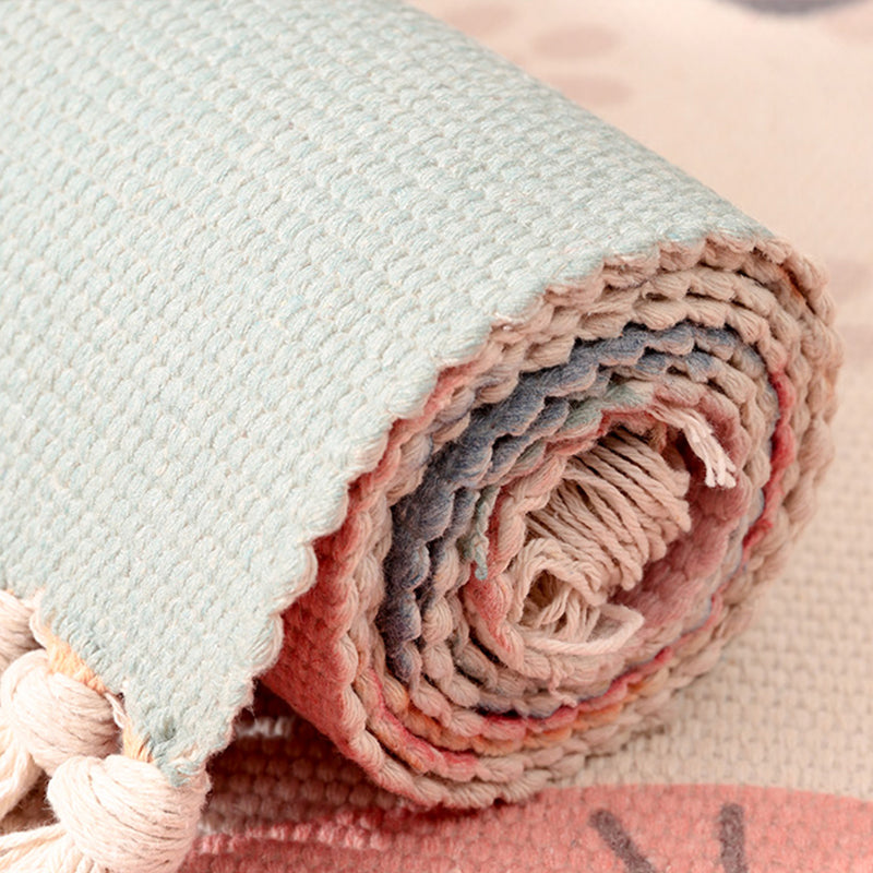Rynx | Modern Kids Bedroom Rug Multi Color Plant Printed Carpet Non-Slip Backing Handmade Indoor Rug