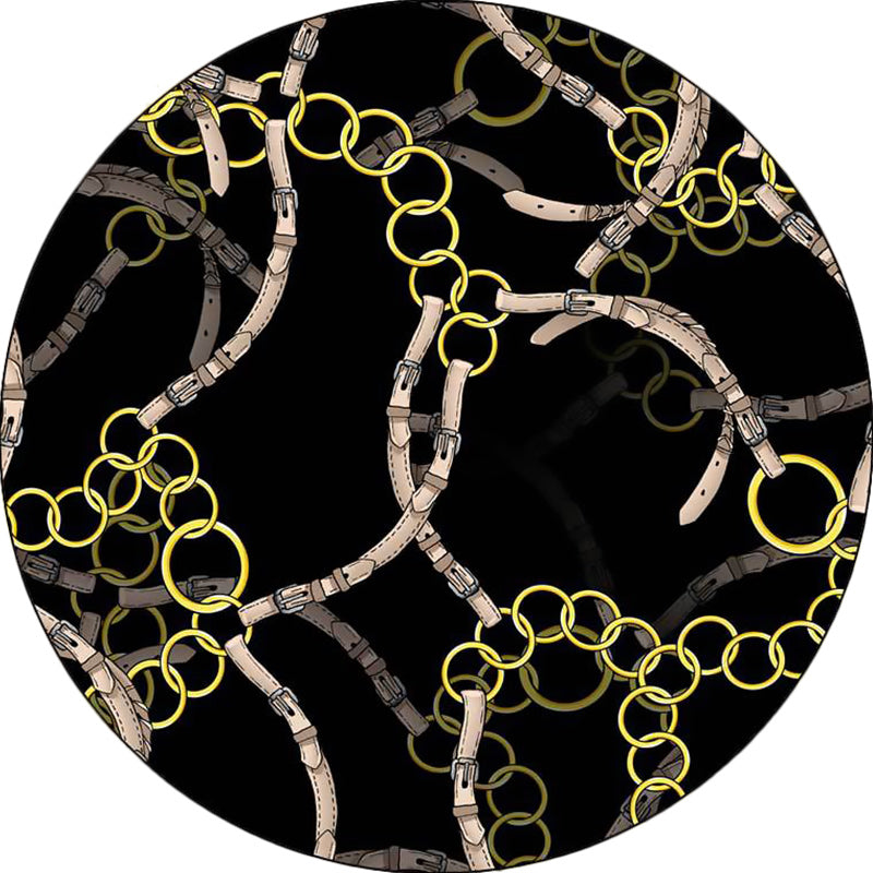Rynx | Modern Living Room Rug in Black Belt Chain Print Rug Polyester Washable Pet Friendly Area Rug