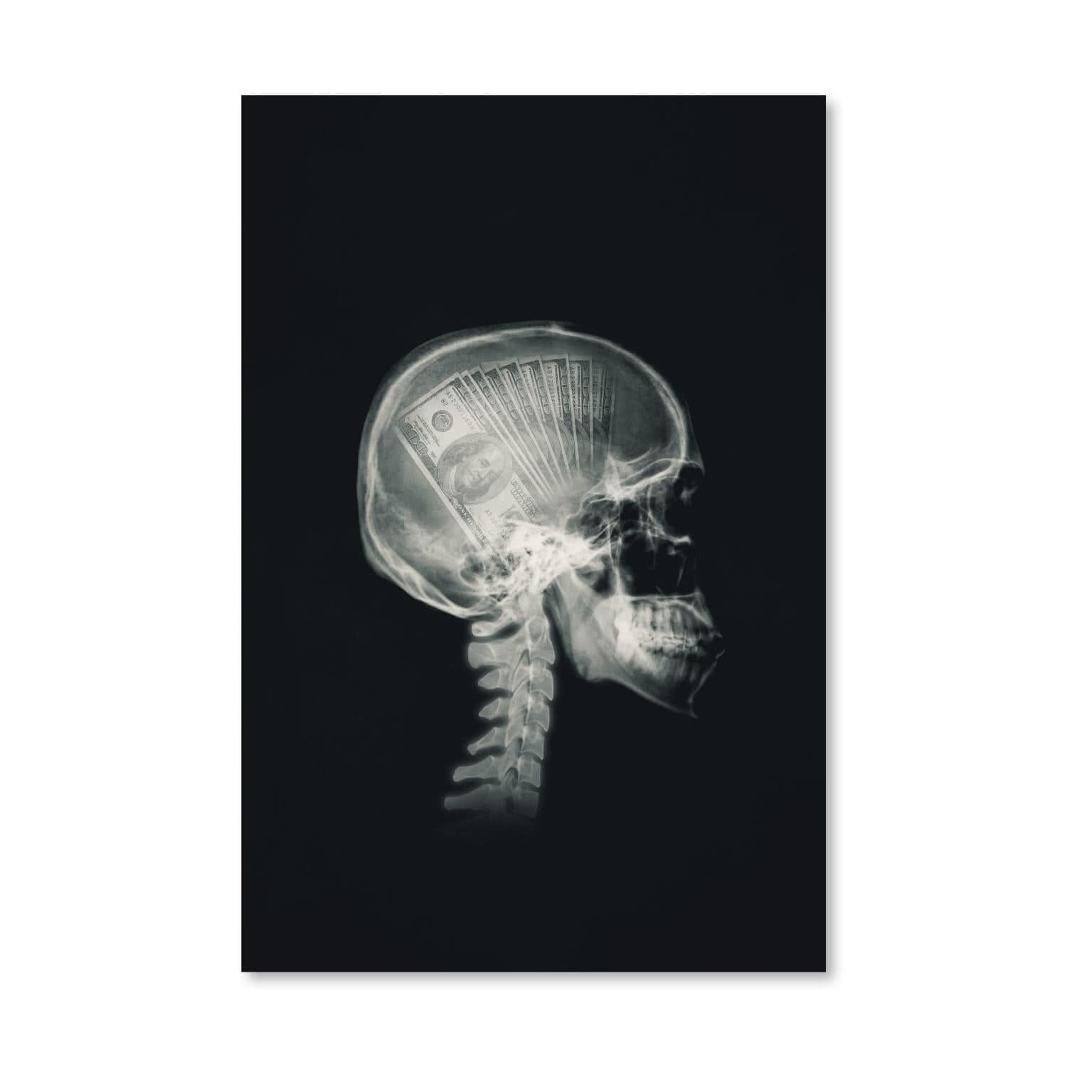 Money Mind X-ray/Money on my Mind X-ray Canvas. We have produced an X-ray image of an entrepreneur, and the findings are astonishing. As Snoop Dogg stated: "My mind is on my money, and my money is on my mind." You can order this design as a rolled canvas, standard canvas, or with a floating frame.