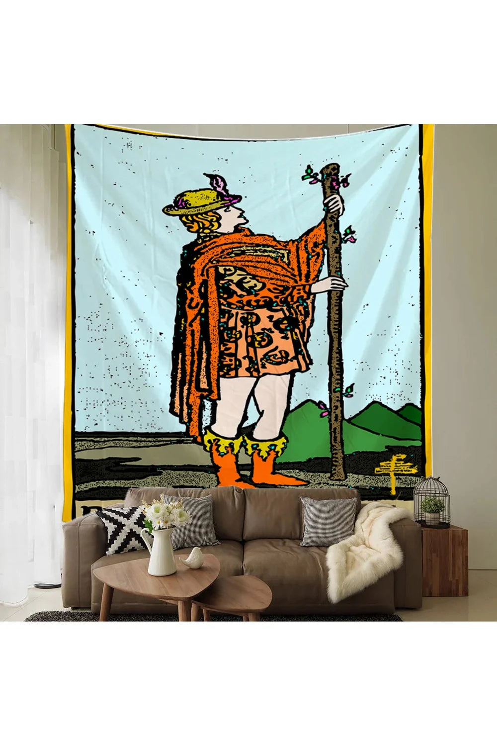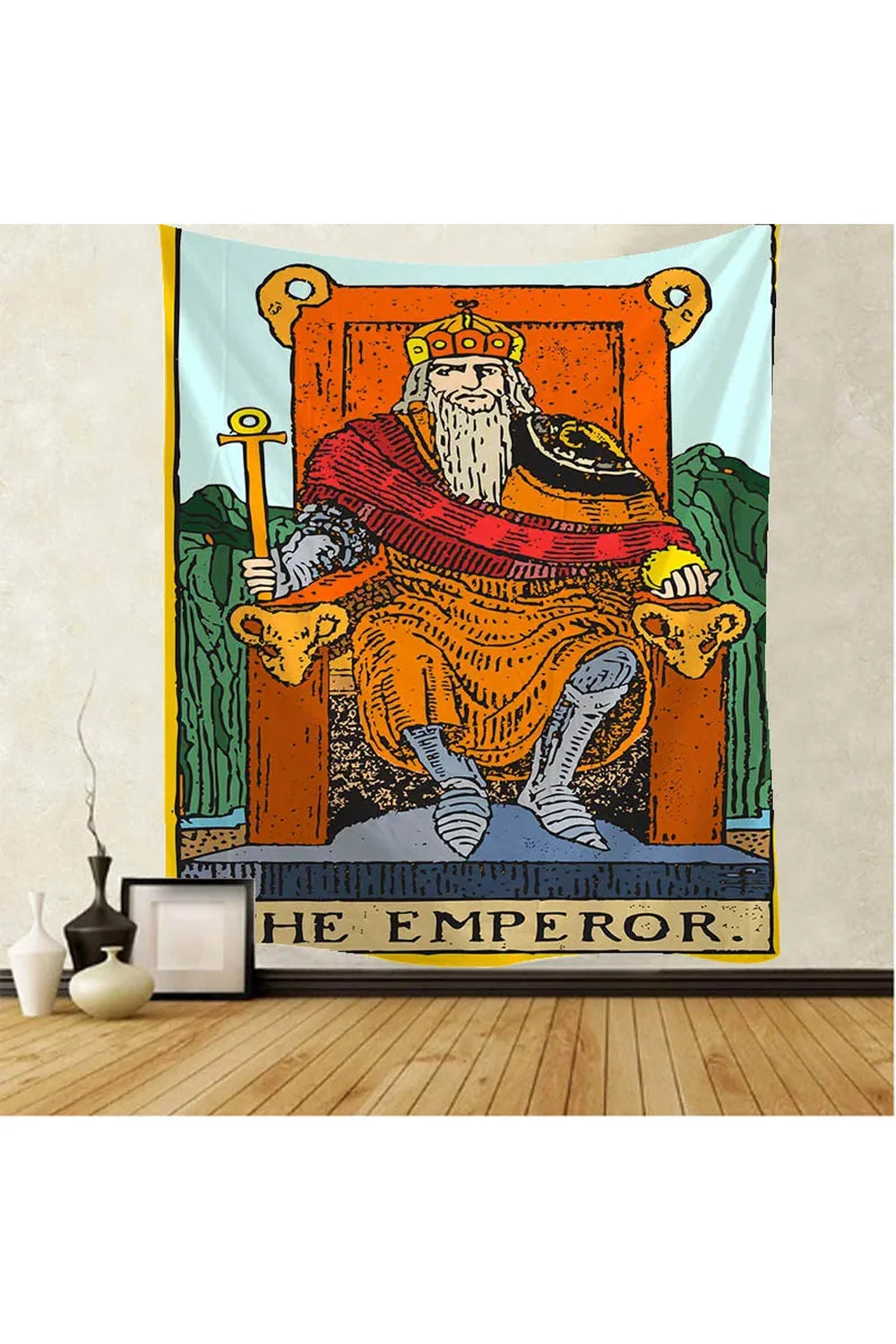 Harness the power of the moon and ancient lore with this captivating tapestry, drawing inspiration from tarot cards. Featuring the Moon card, embellished with the triple goddess Hecate and encircled by howling wolves, it’s ideal for fostering a spiritual and magical ambiance. The vibrant colors and intricate symbolism make it a striking centerpiece for bedrooms, meditation spaces, or anywhere you'd like to inspire a sense of wonder and enchantment.