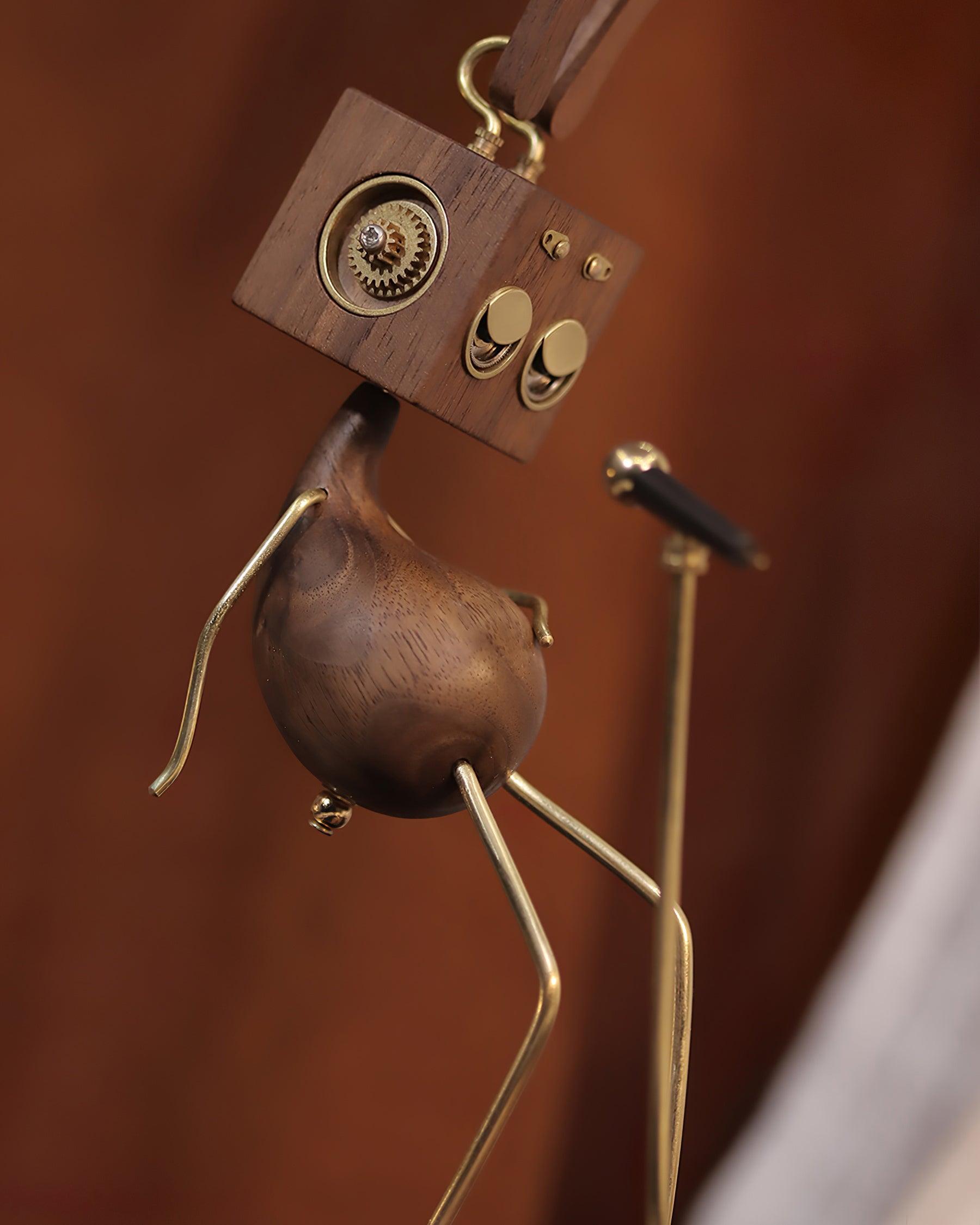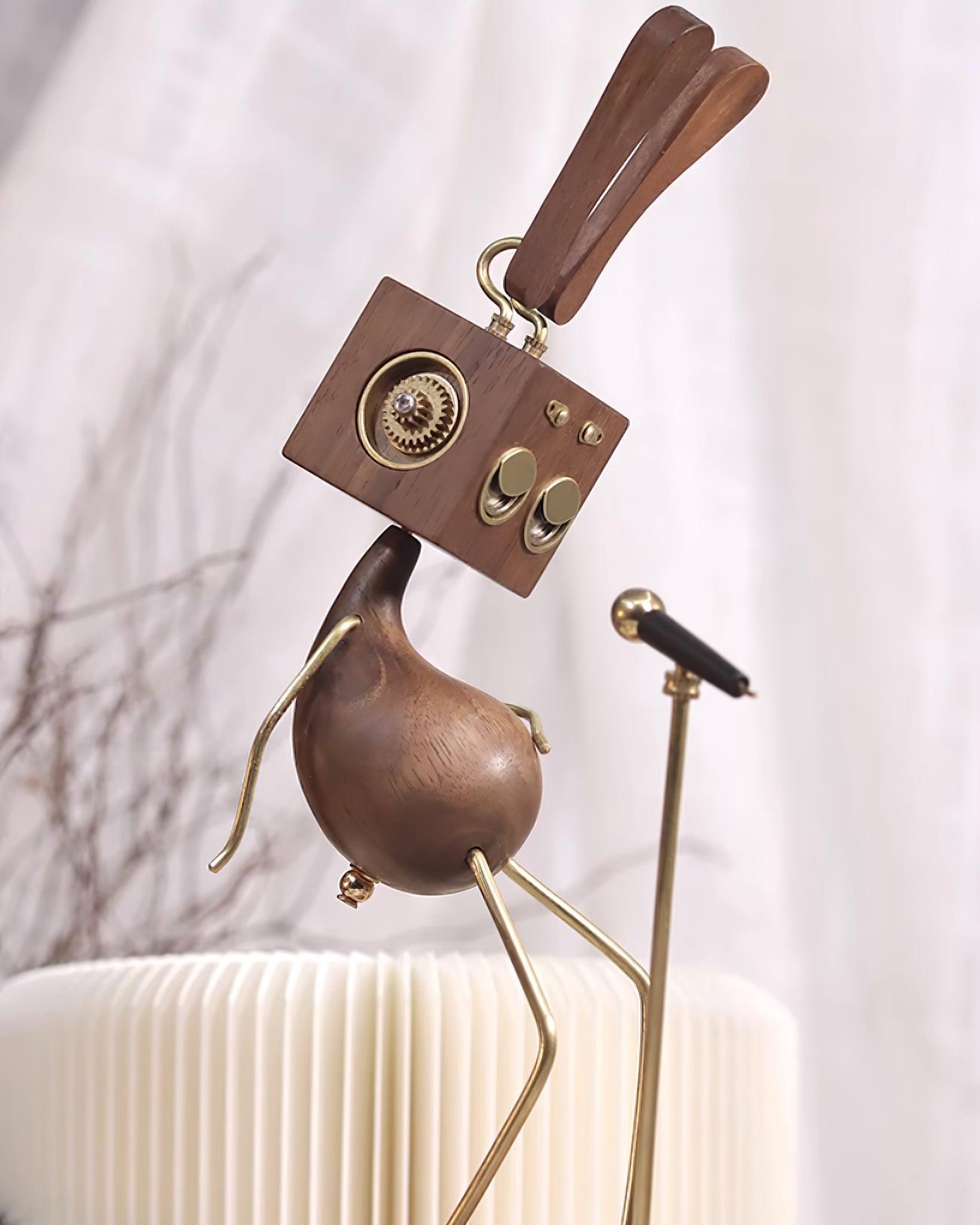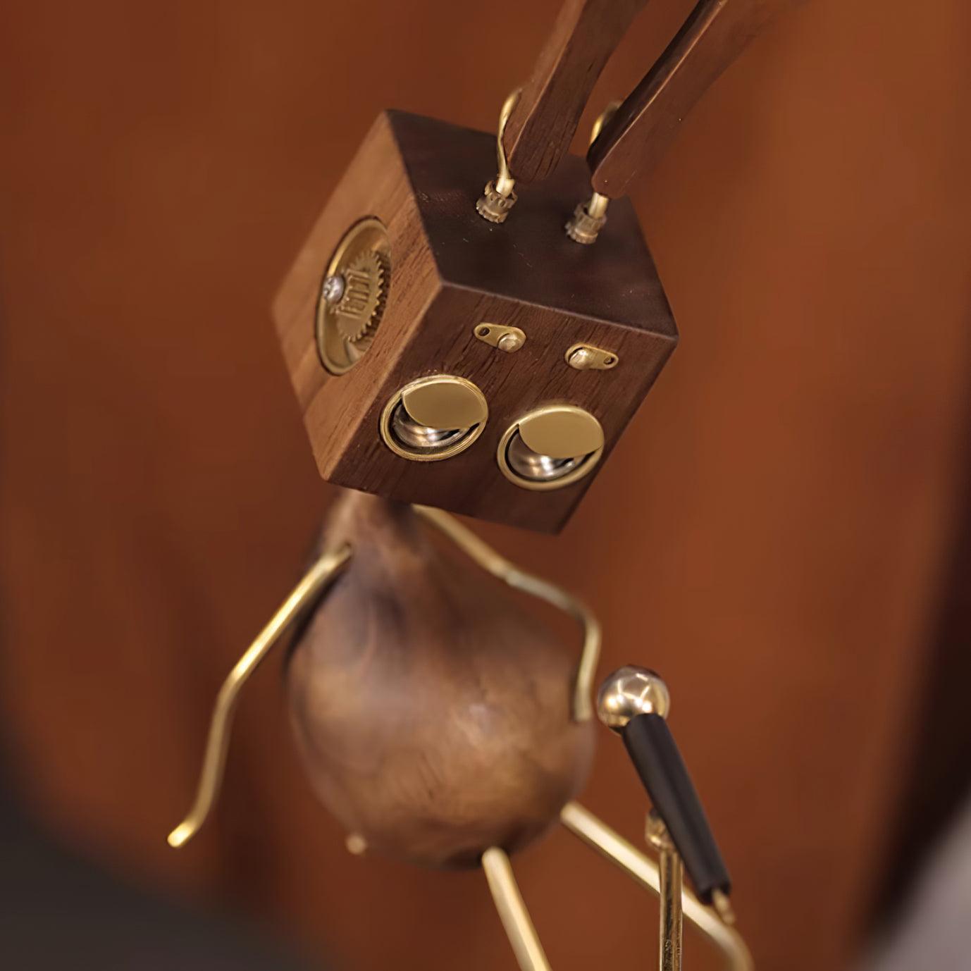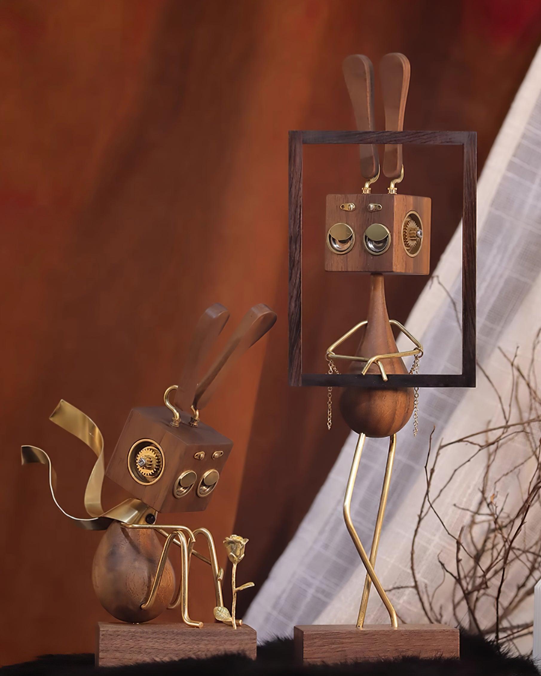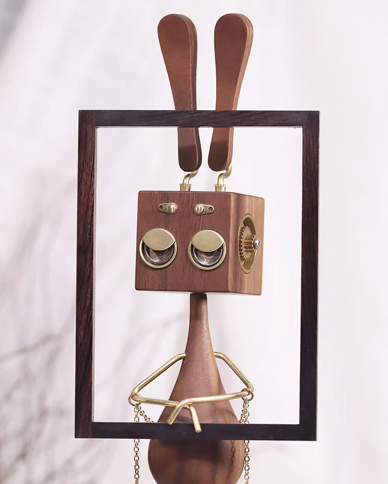 Meet the Walnut Rabbit, a whimsical fusion of natural woodwork and imaginative design. This charming figurine brings a playful spirit to any room, with its exaggerated features and poised stature, reminiscent of a character straight out of a storybook. Crafted from rich walnut wood and accented with elegant brass details, this decorative piece stands tall, marrying the rustic with the fantastical.