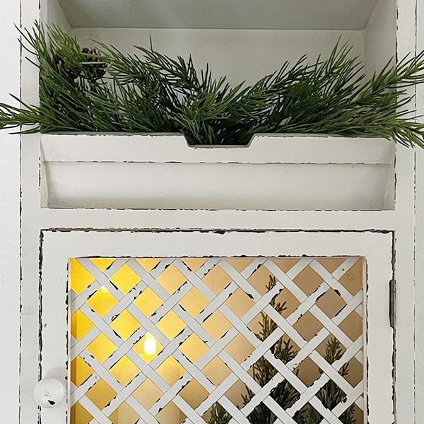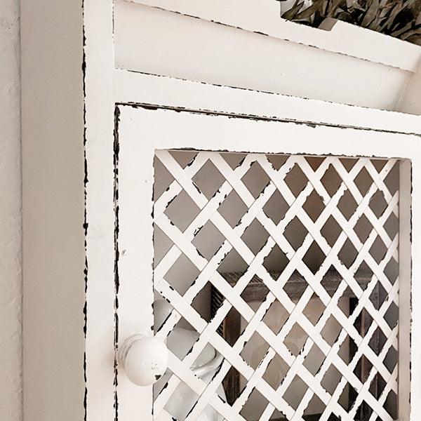 Let this adaptable hanging organizer made from weathered wood beautify your entryway or find a place in your home office or even the bathroom! This item assists in keeping your smaller belongings in order and infuses a great deal of rustic appeal into your space. Allow this whitewashed wall shelf to hold your scarves, hats, and jackets in the entryway while the top is adorned with your favorite decor or candles! Hang your guest towels and hand towels on the hooks in your bathroom and keep toiletries in the cabinet. This piece is EXTREMELY versatile, and the potential uses are LIMITLESS!